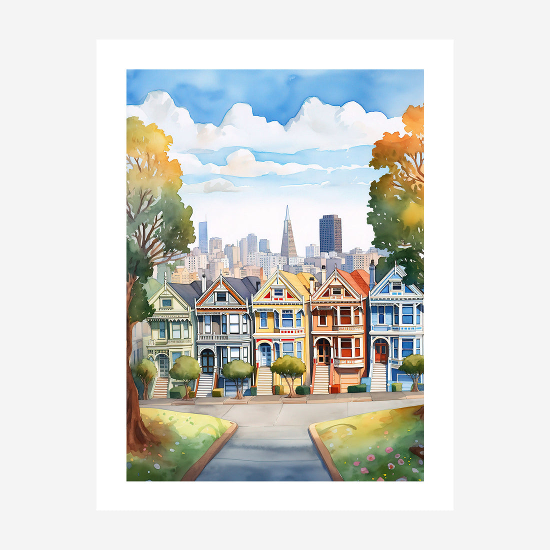 About Alamo Square, San Francisco Whimsical Folk Art Print: Dive into the whimsical charm of...