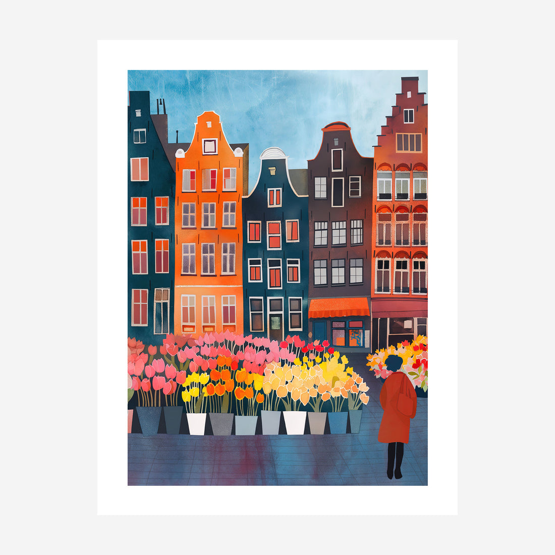 About Amsterdam Flower Market Whimsical Folk Art Print: Dive into the whimsical charm of the...