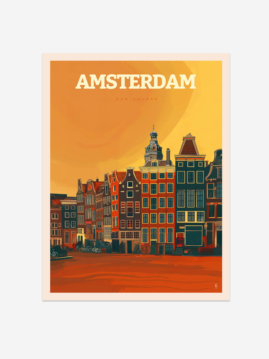 Amsterdam Dam Square Travel Poster – Vintage-Inspired Wall Art Print