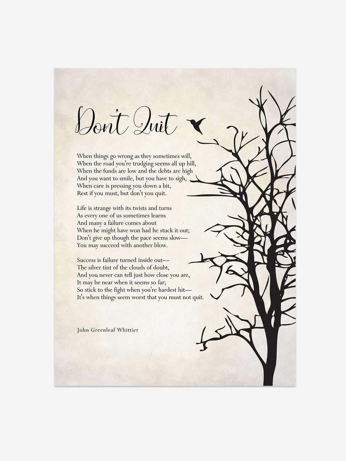 Don’t Quit Poem Print – Inspirational Art – Motivational Wall Decor