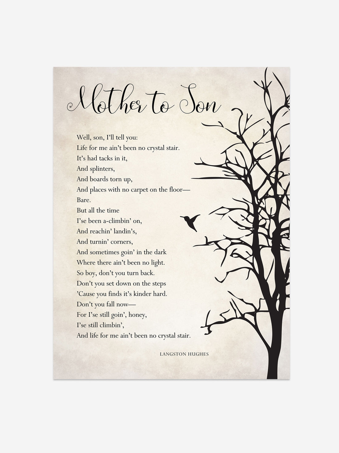 Mother to Son Poem Print by Langston Hughes – Inspirational Art – Motivational Wall Decor