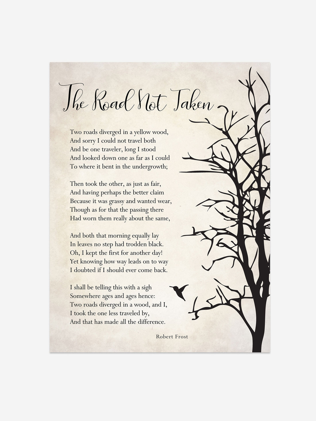 The Road Not Taken Poem Print by Robert Frost – Inspirational Art – Motivational Wall Decor
