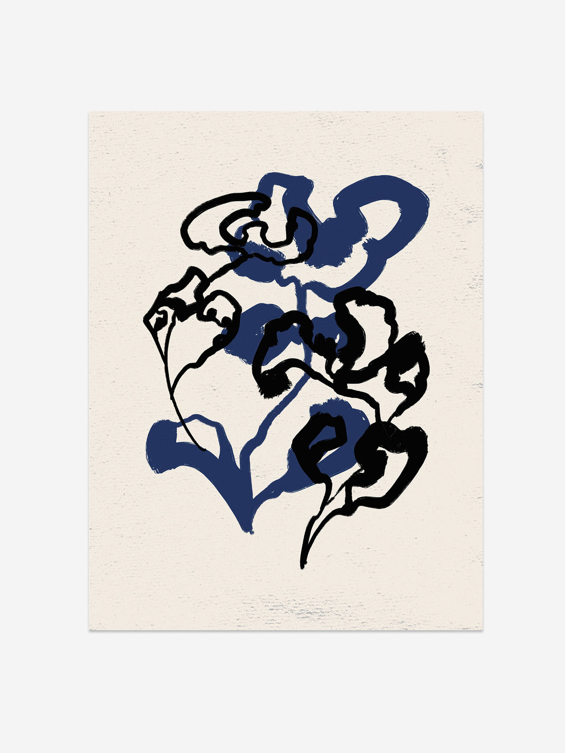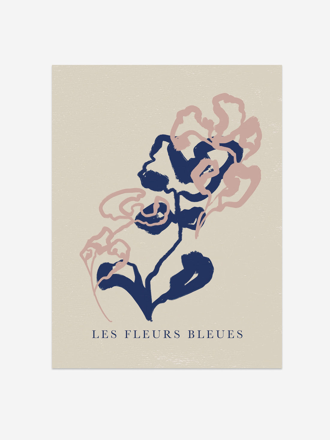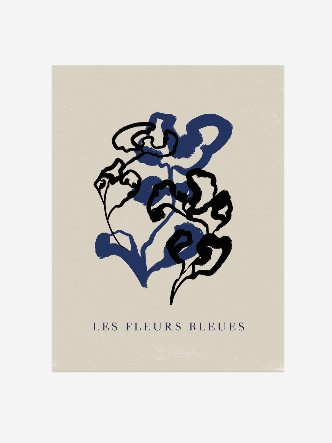 Abstract Floral Ink Art Print - "Les Fleurs Bleues"