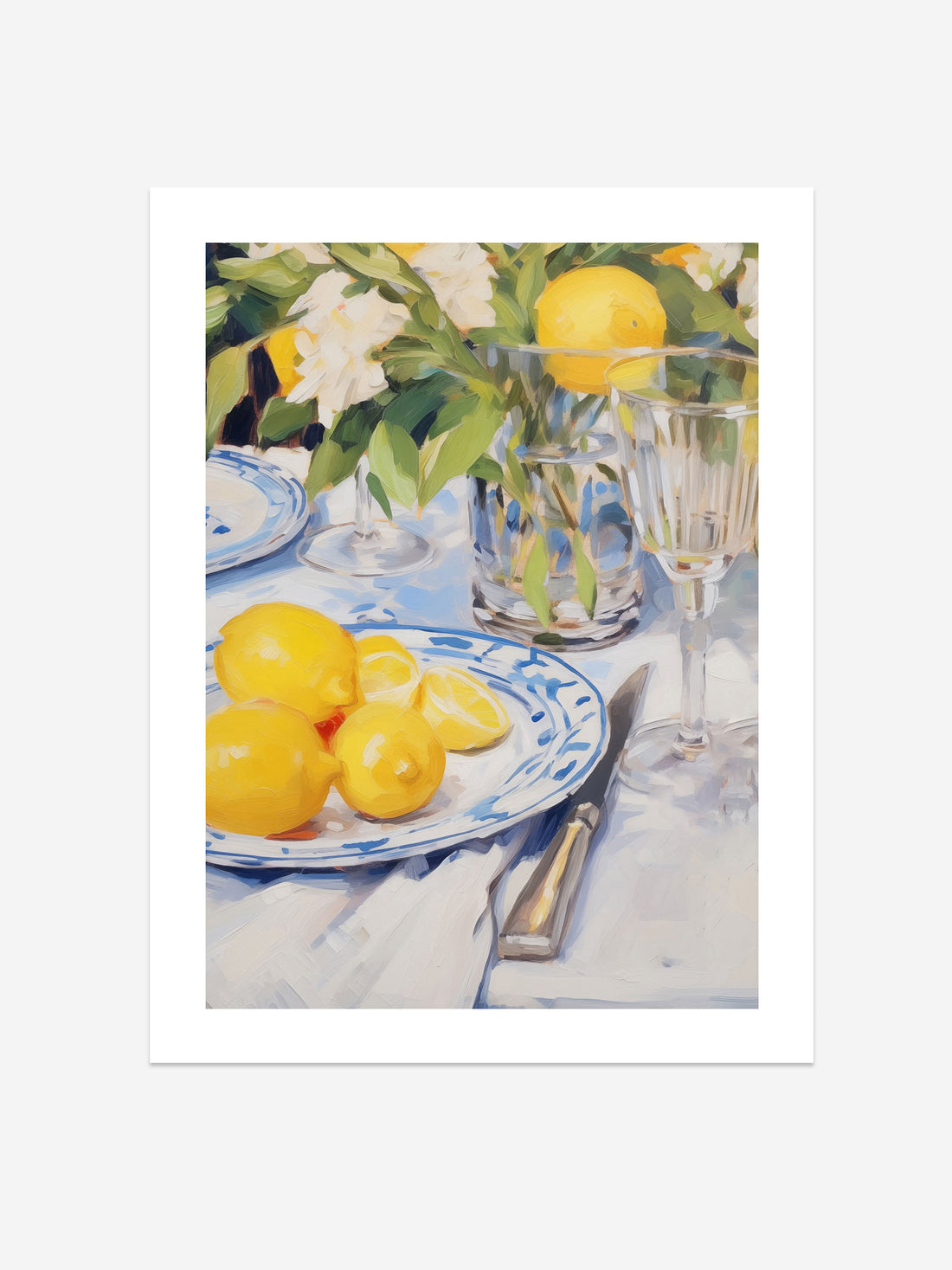 Elegant Lemon Table Setting – Vibrant Still Life Art Print for Kitchen Decor