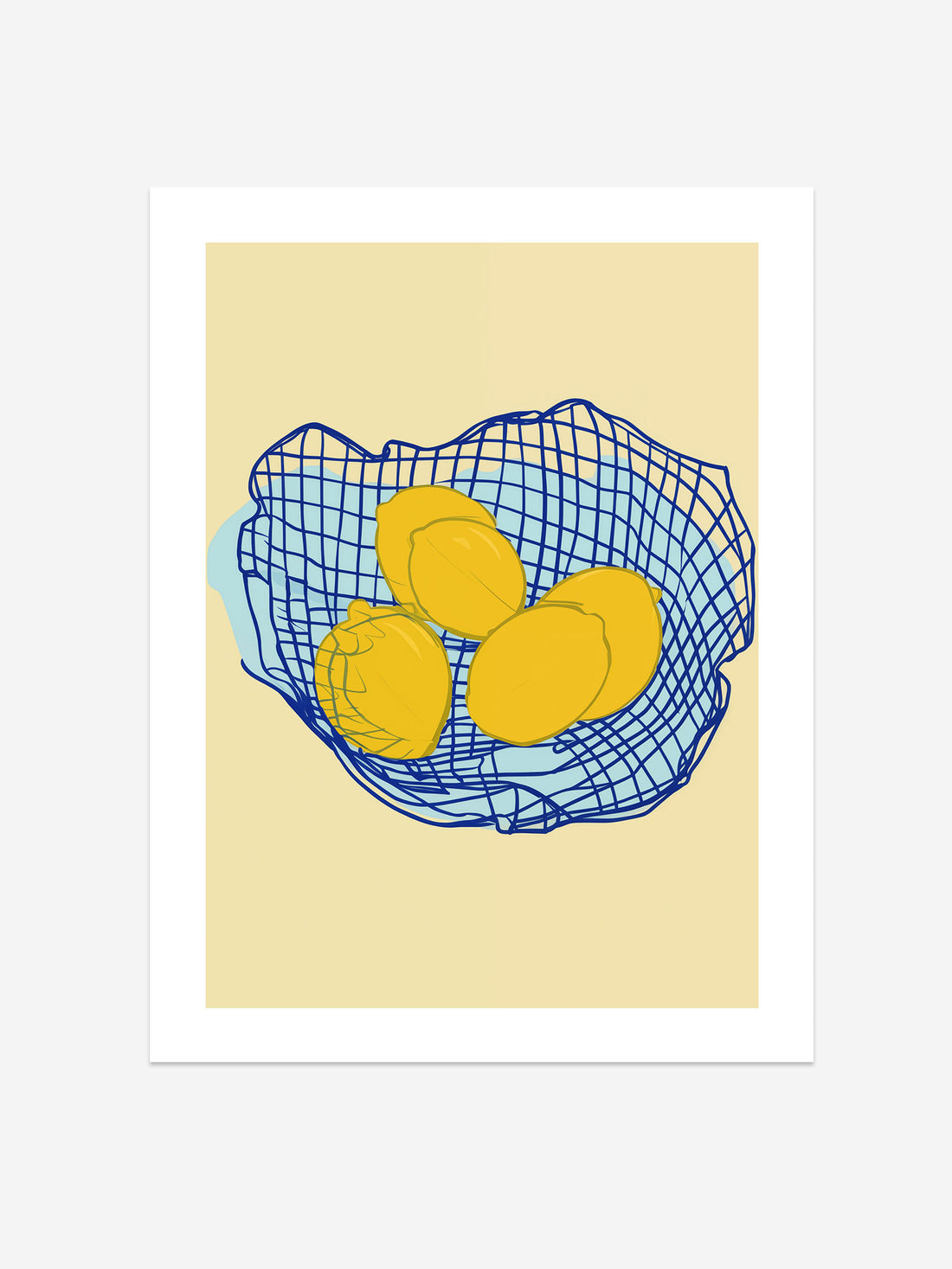 Modern Lemons in Blue Wire Basket Art Print – Minimalist Fruit Wall Decor