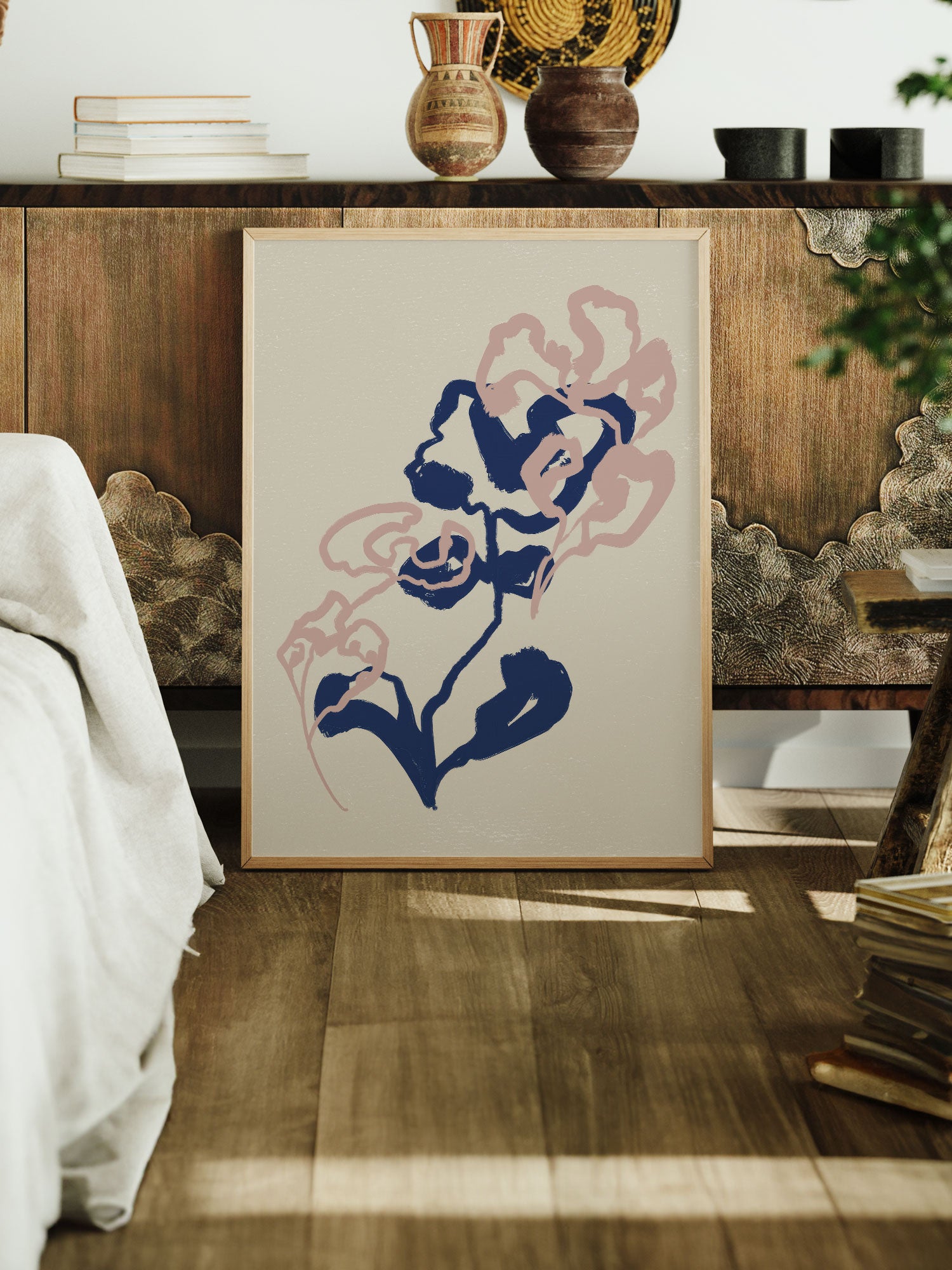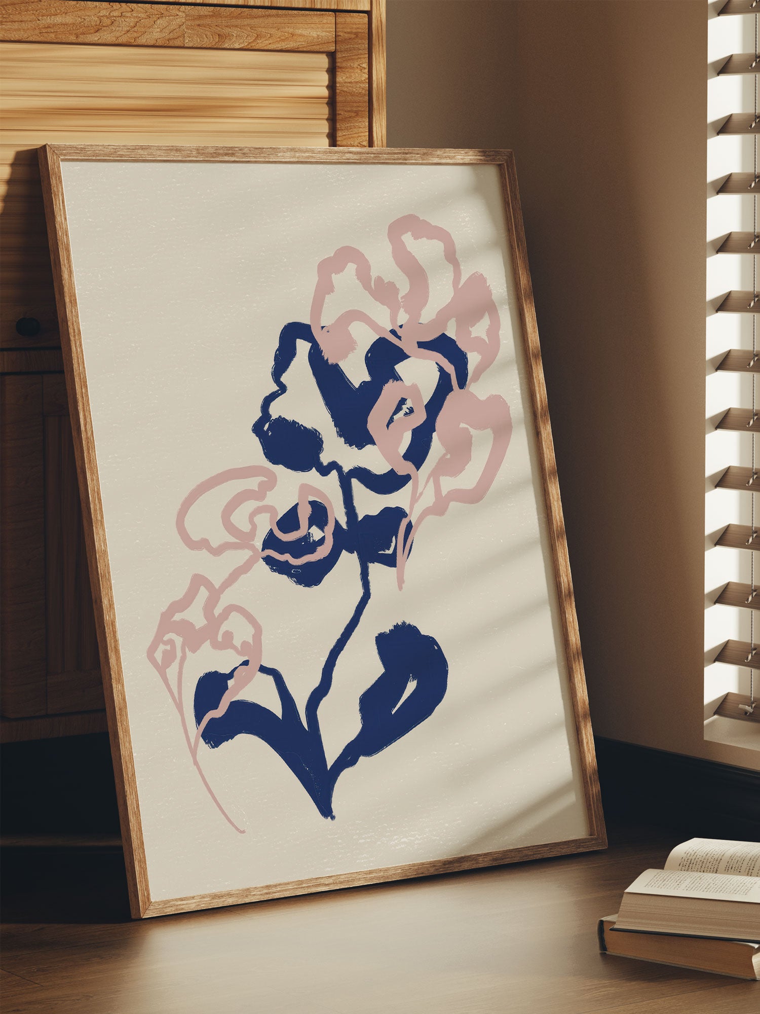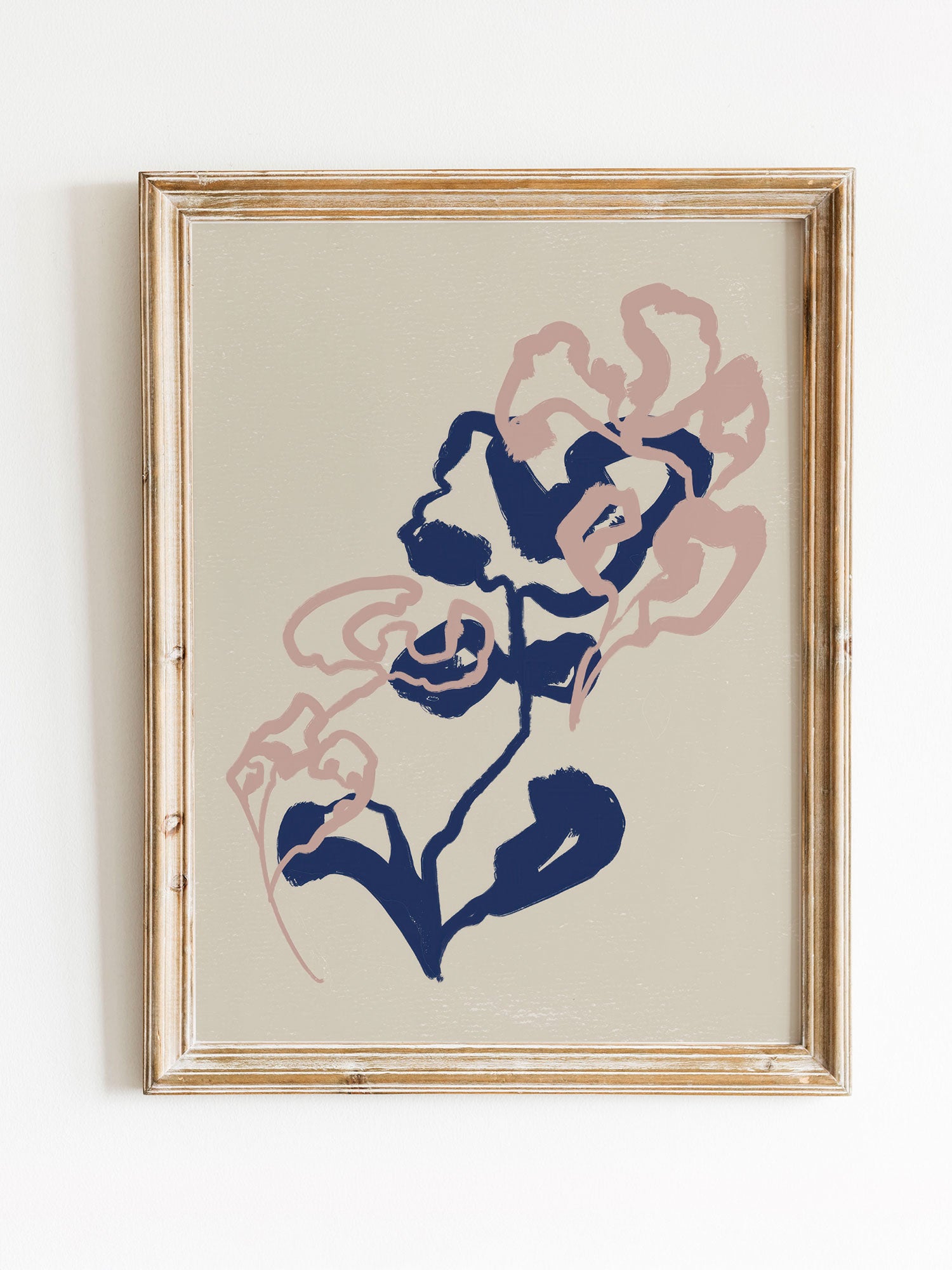 Abstract Botanical in Blue and Blush – Modern Minimalist Floral Print