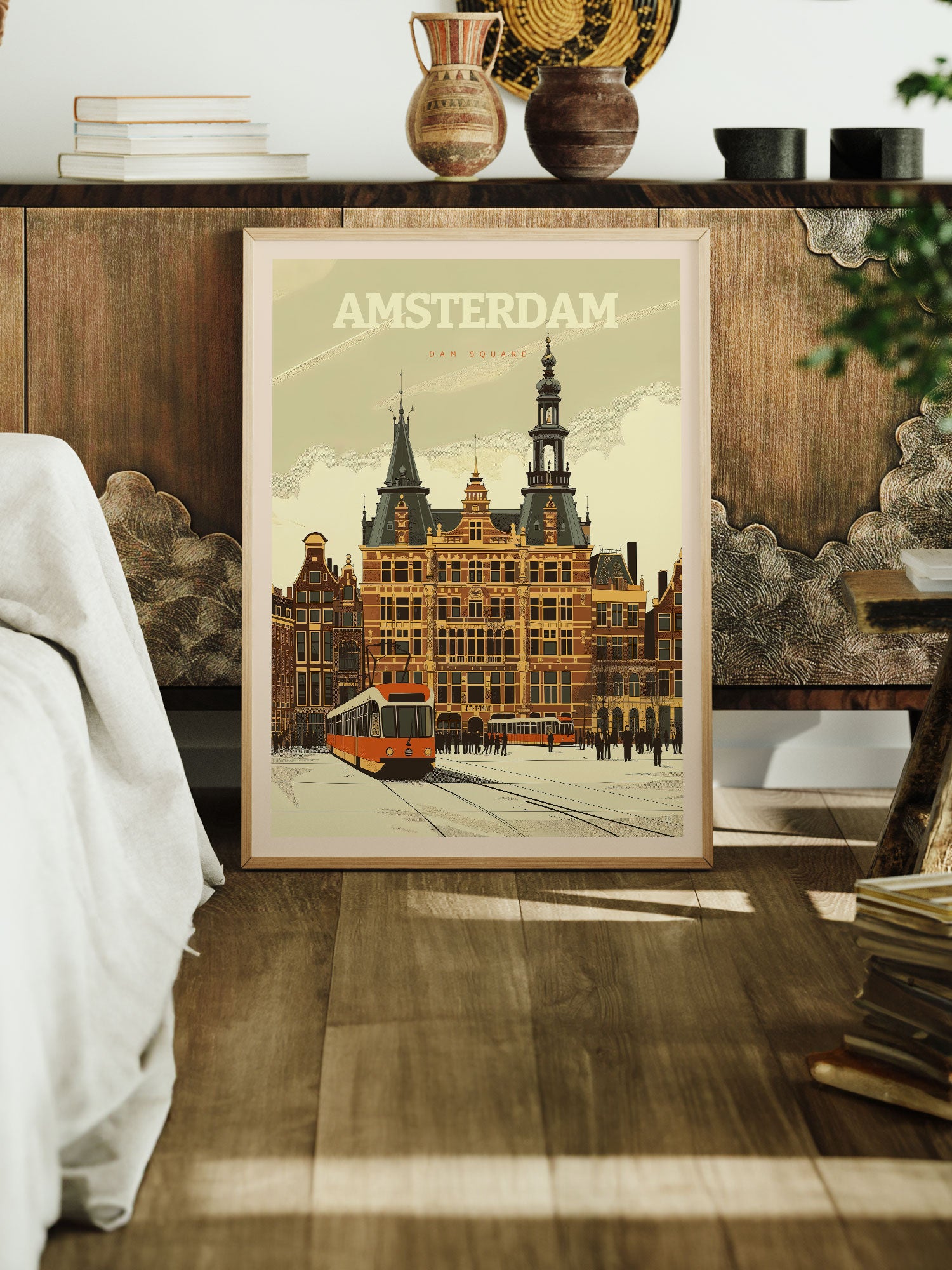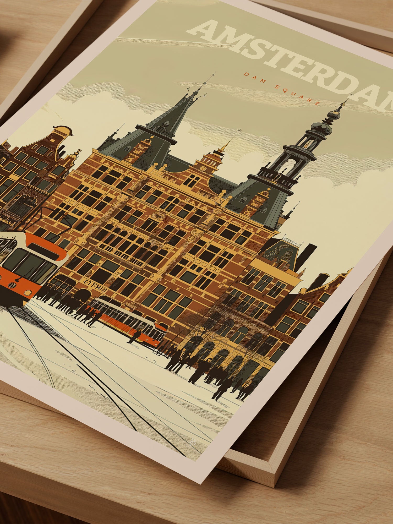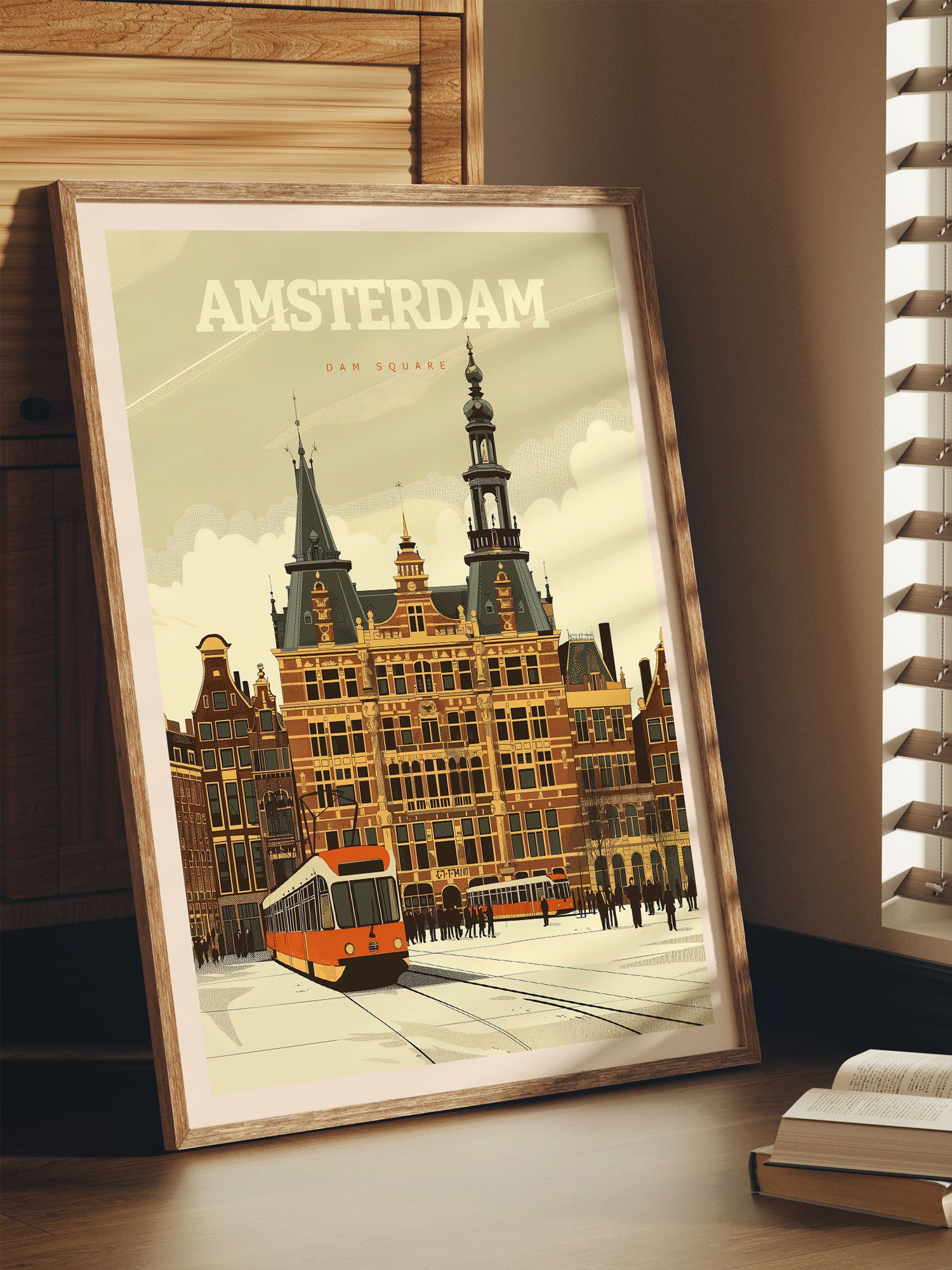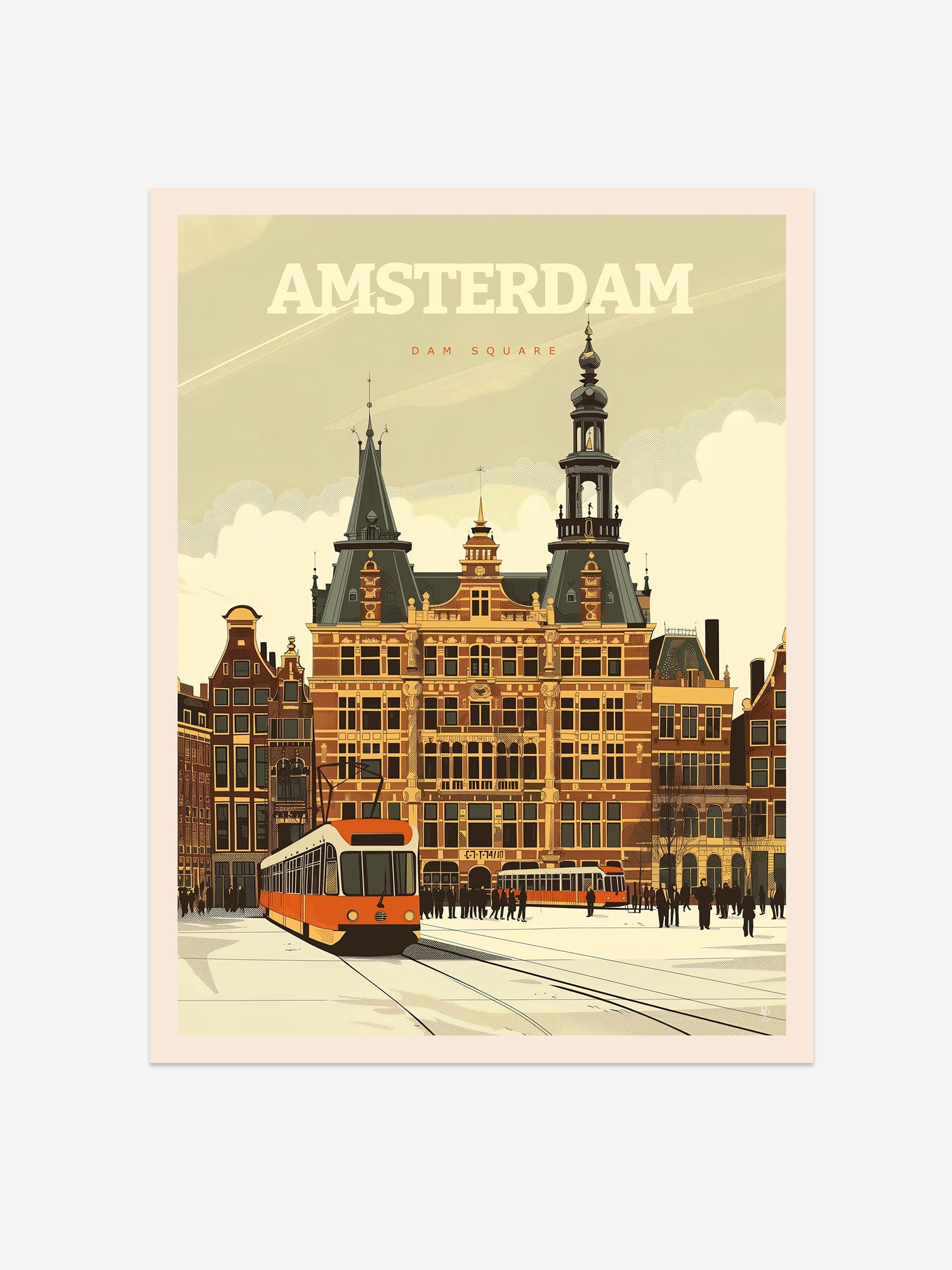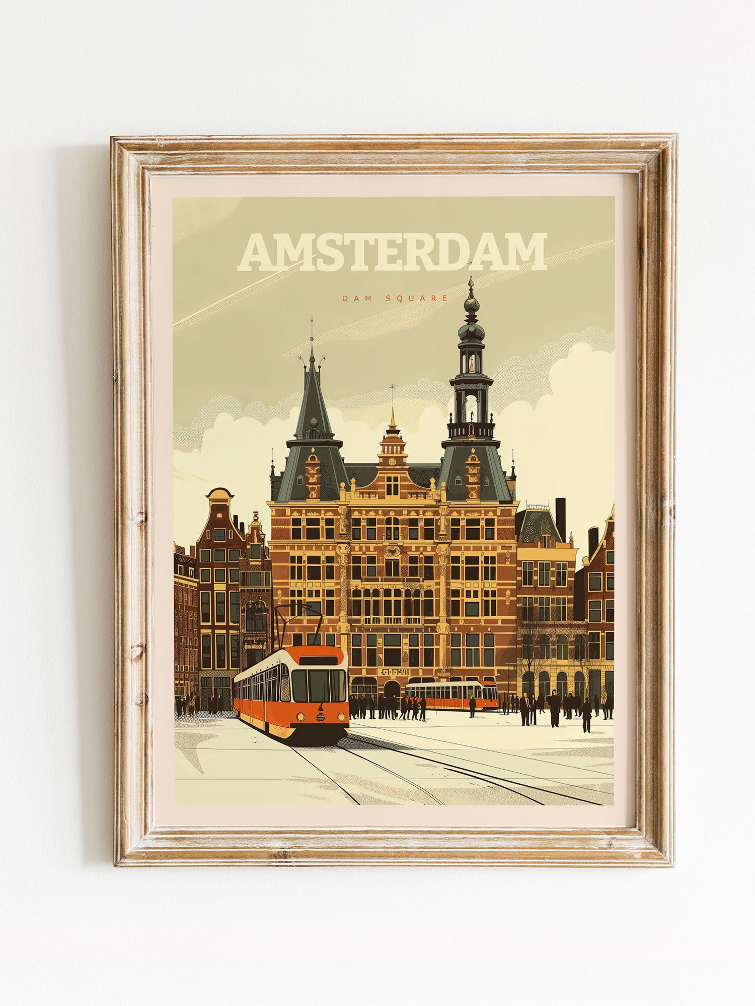 Amsterdam Dam Square Travel Poster – Vintage-Inspired Wall Art Print