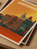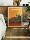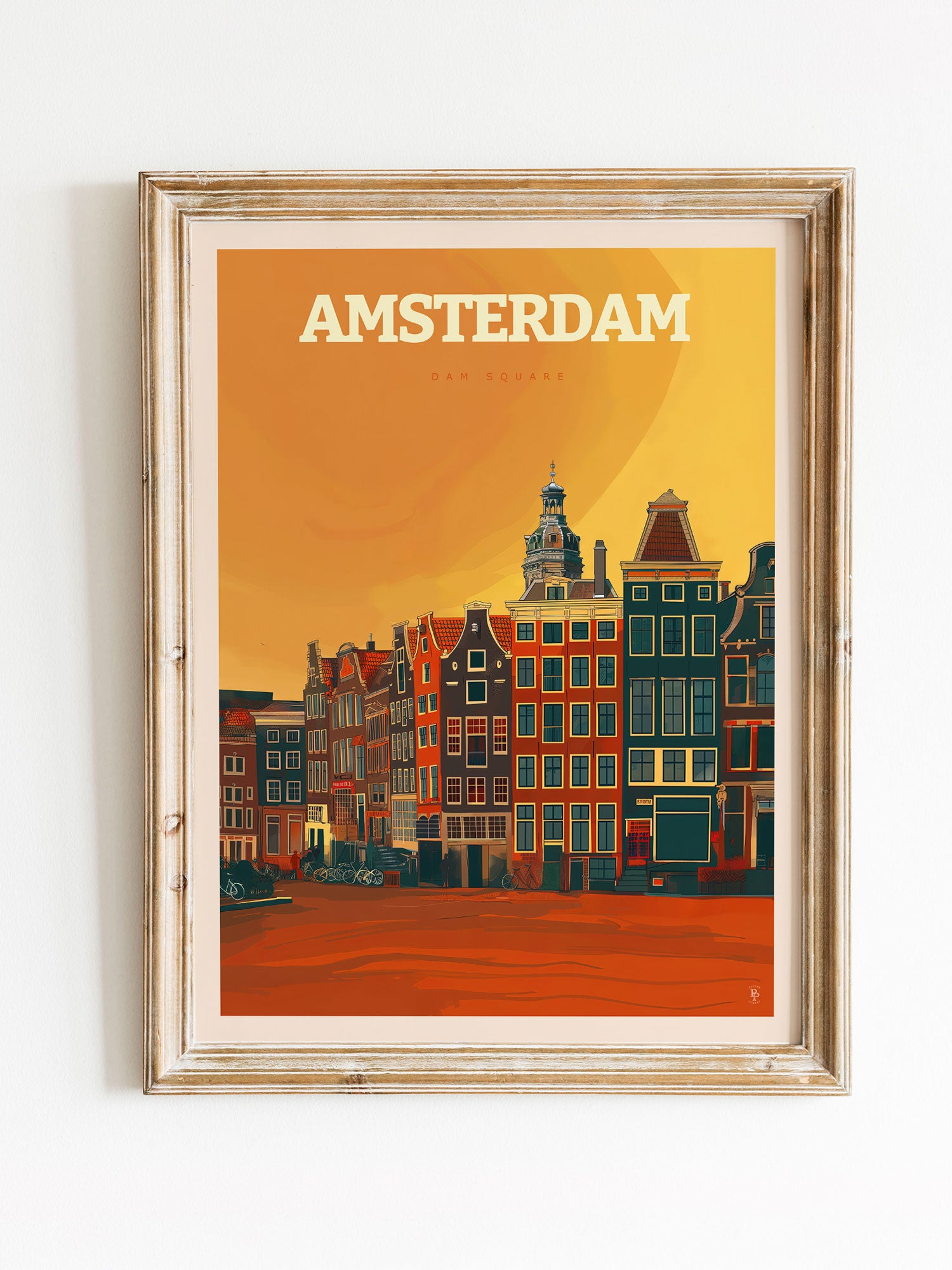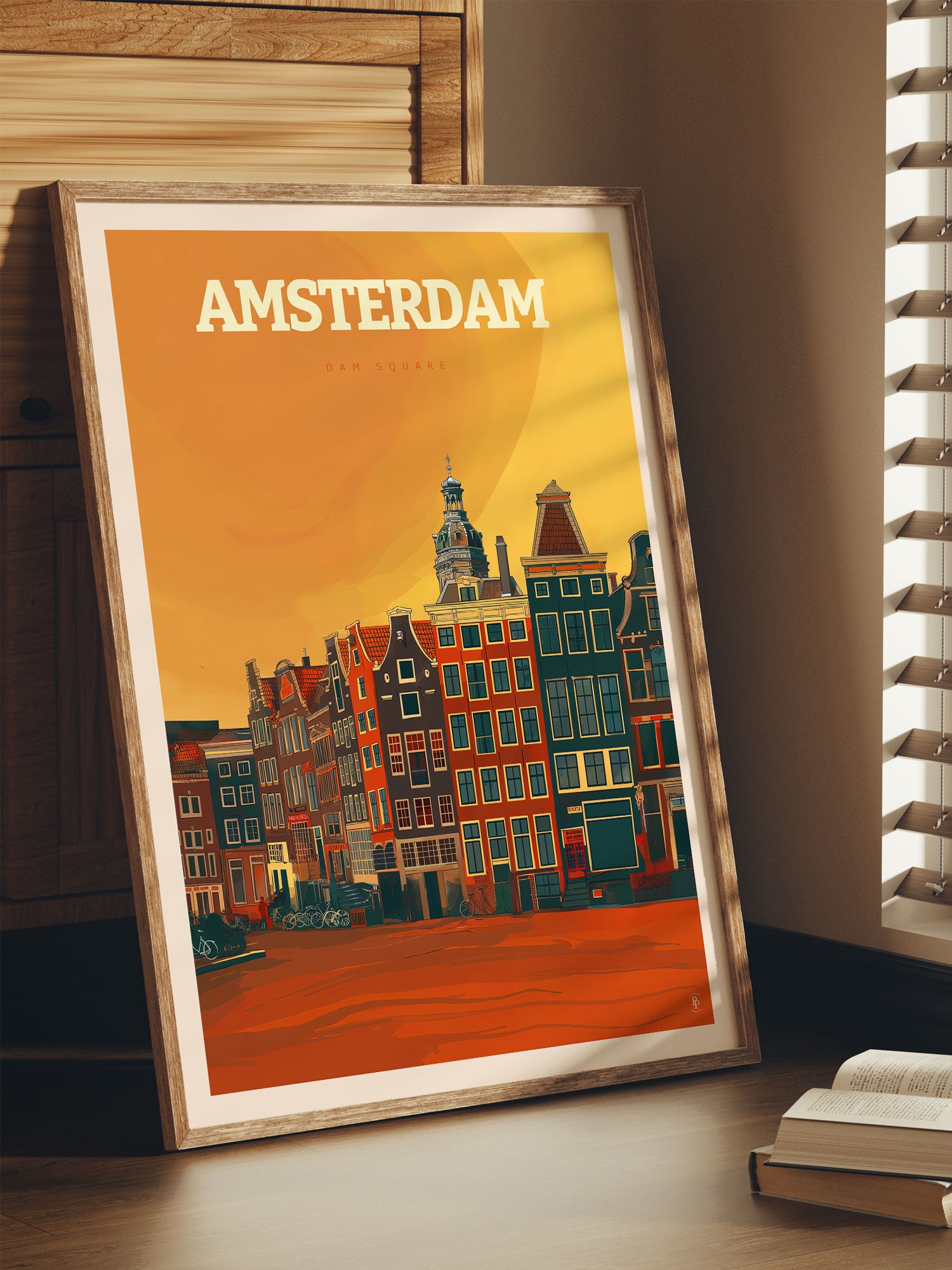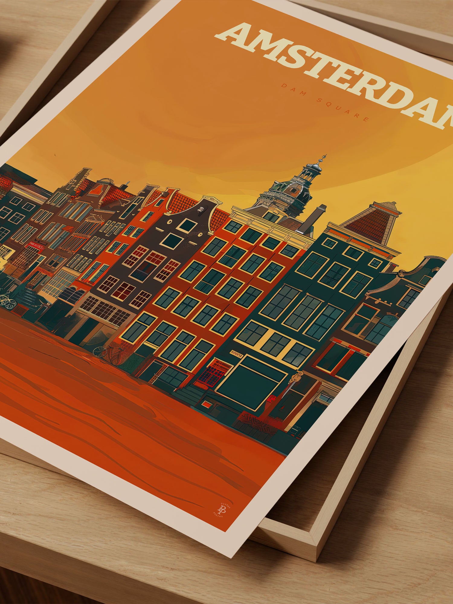 Amsterdam Dam Square Travel Poster – Vintage-Inspired Wall Art Print