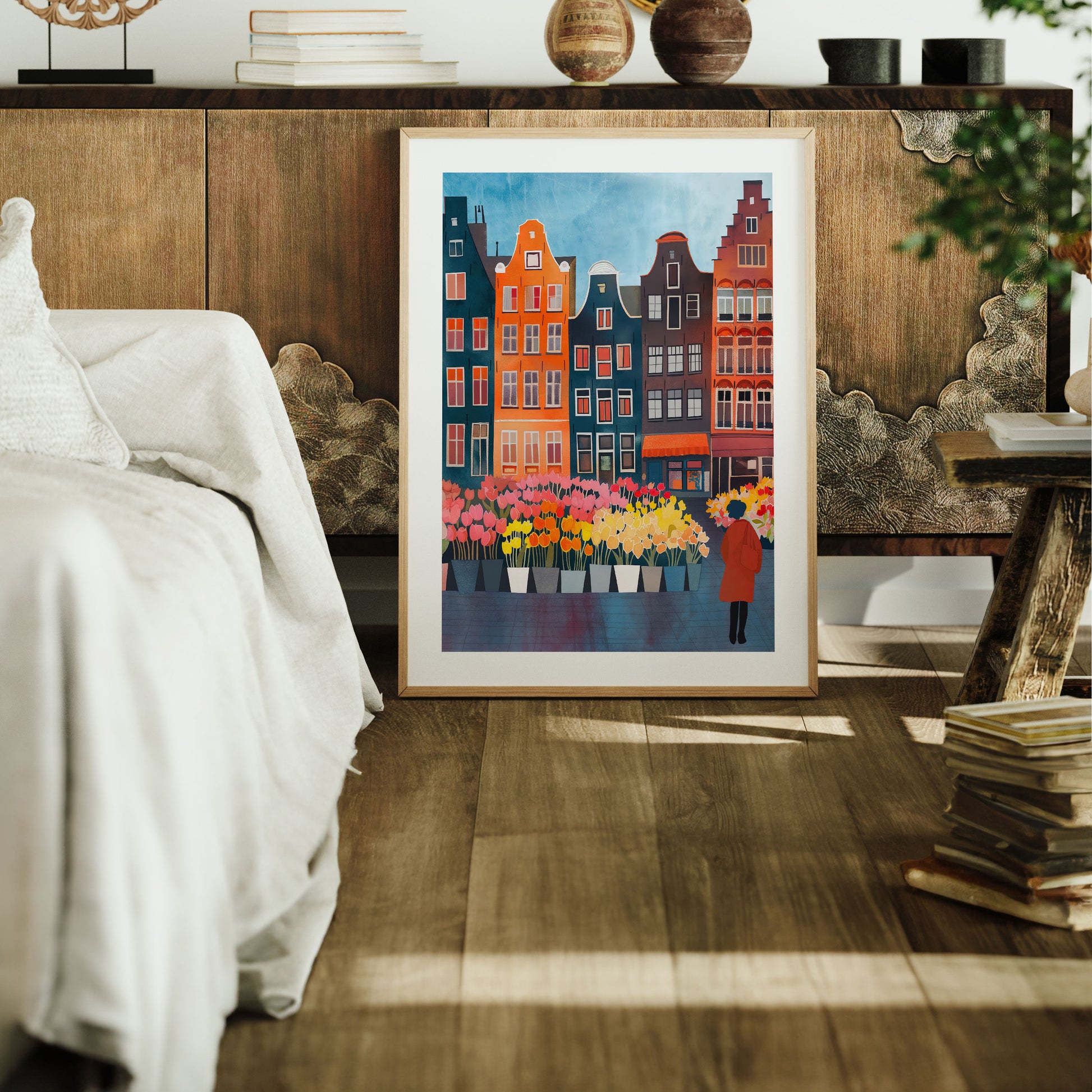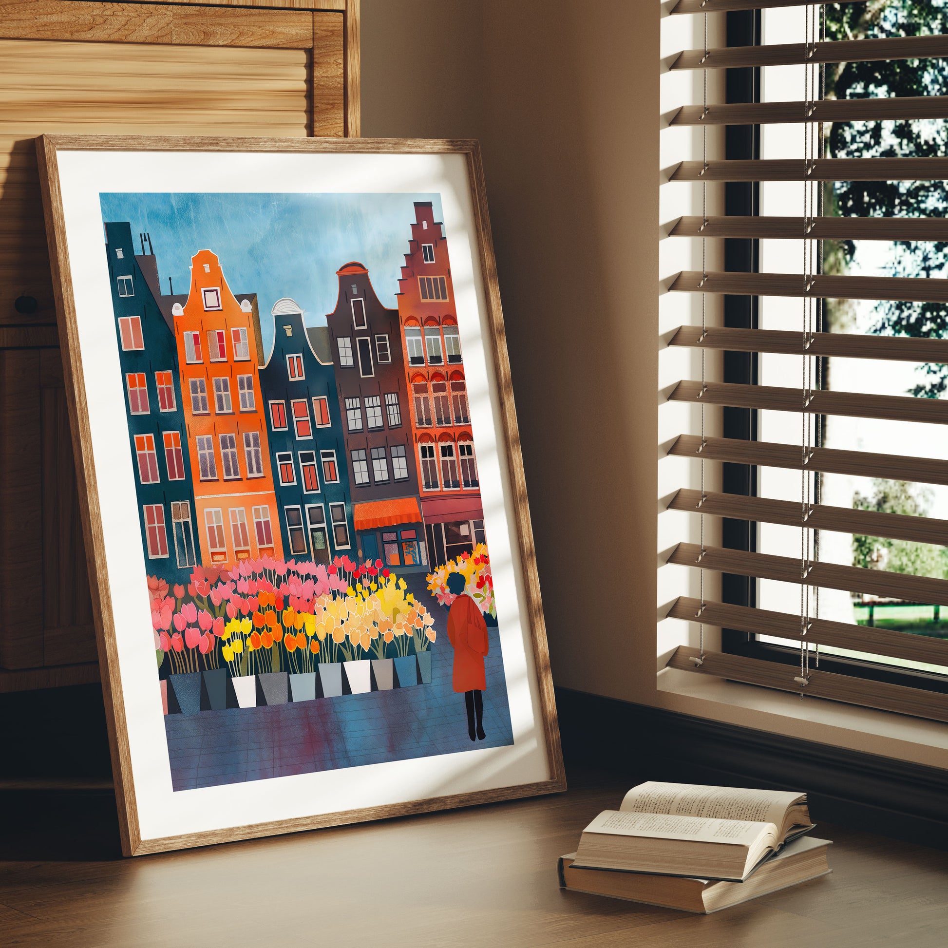 Amsterdam Flower Market Whimsical Folk Art Print