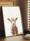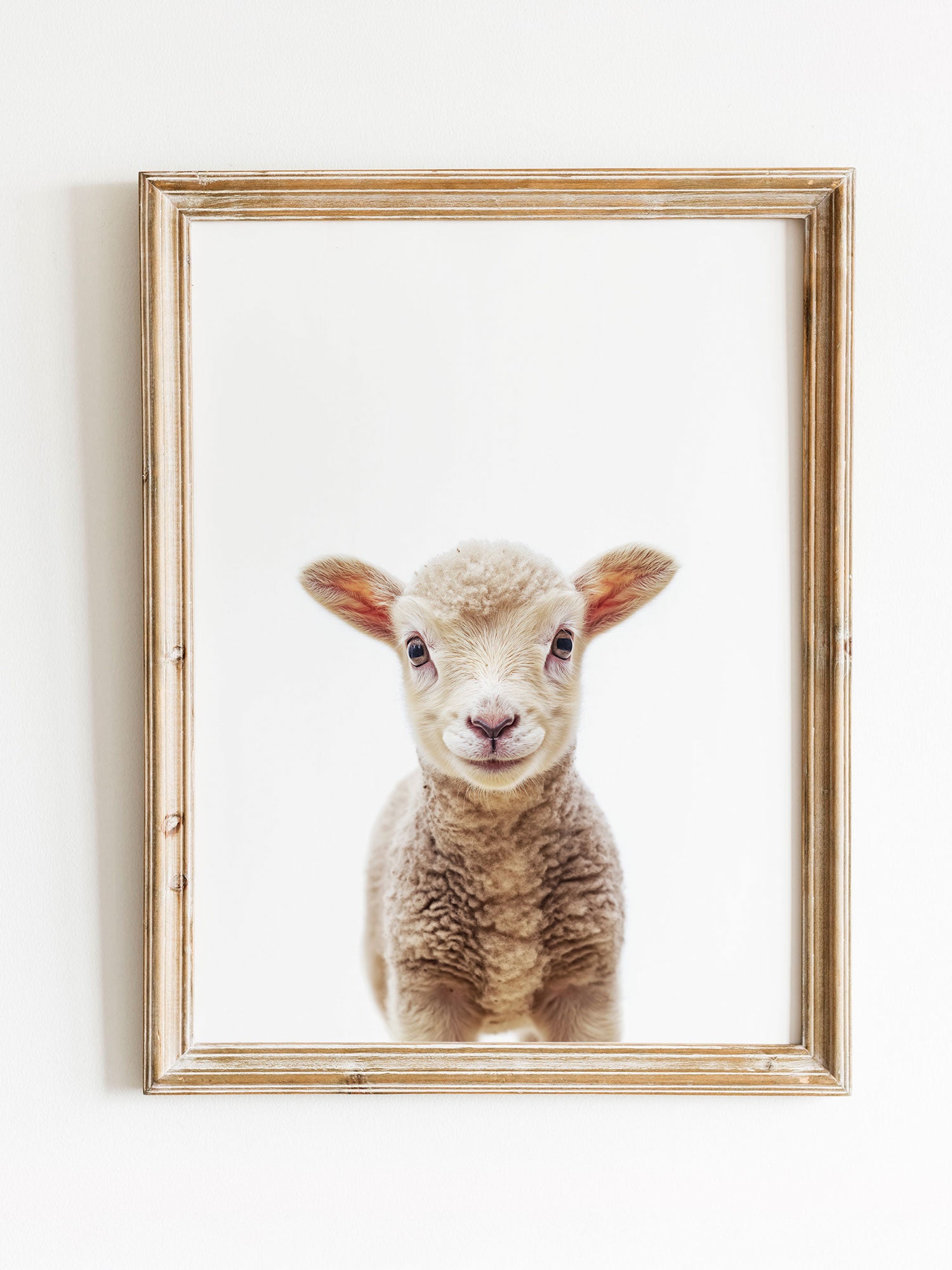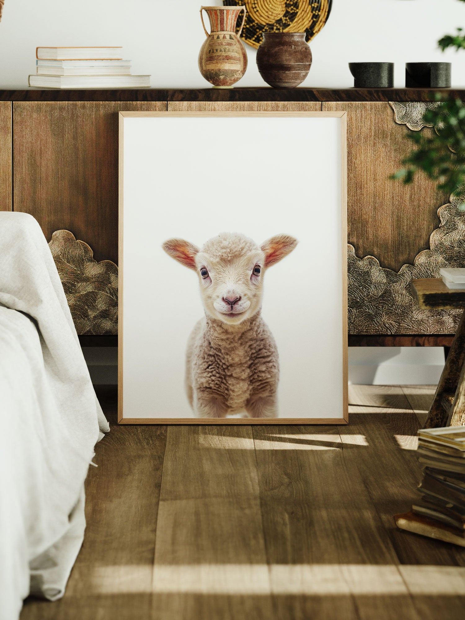 Bring the gentle charm of this baby lamb into your child's room with this sweet nursery print. Featuring an adorable portrait of a fluffy baby lamb, this artwork adds warmth and a sense of calm to any nursery or playroom. Giclée printed on archival matte paper, this high-quality print ensures vibrant colors that will last, creating a nurturing environment for your little one.