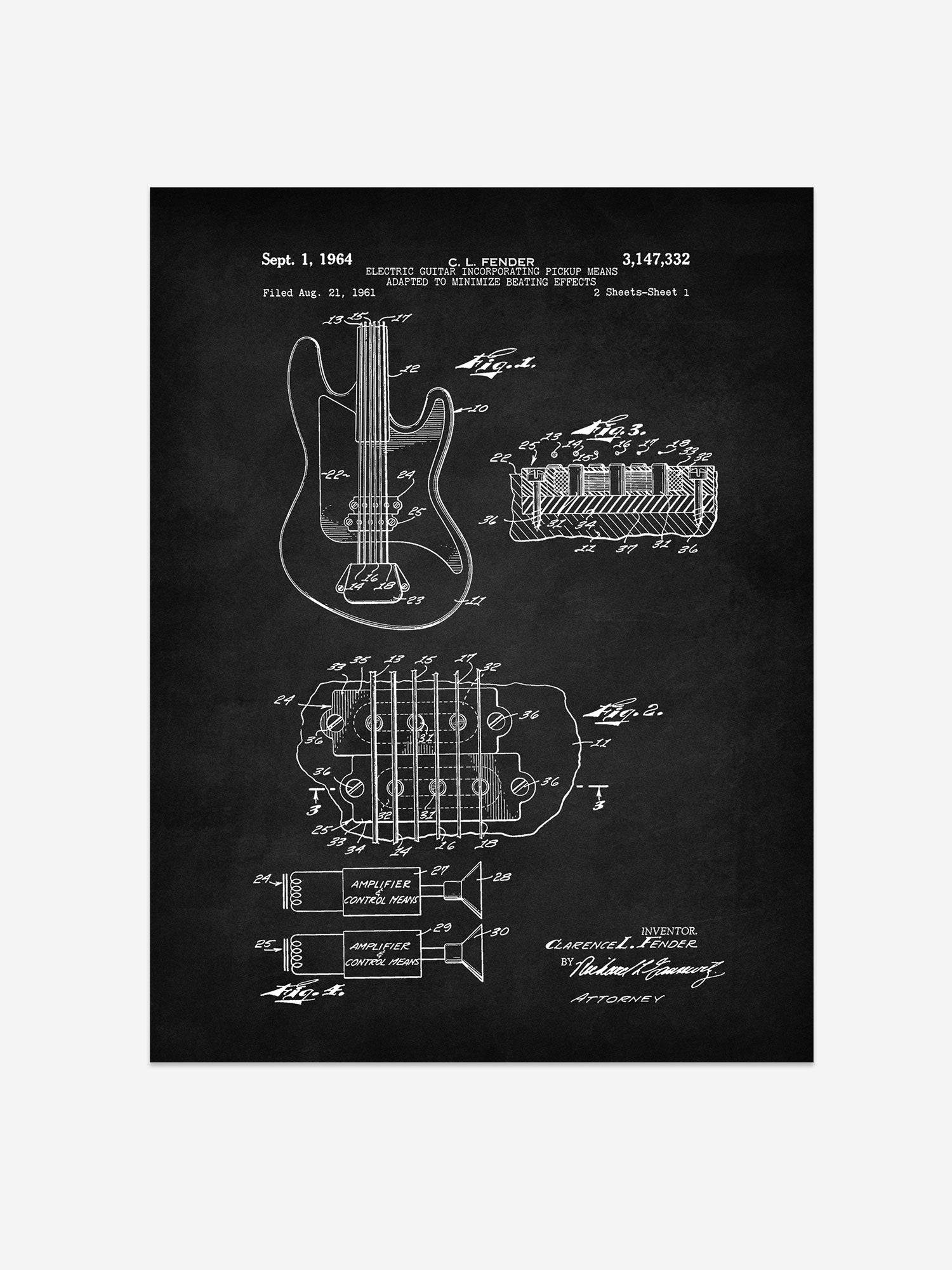 Blues Guitar Patent Print – Musical Instrument Art – Office Wall Decor