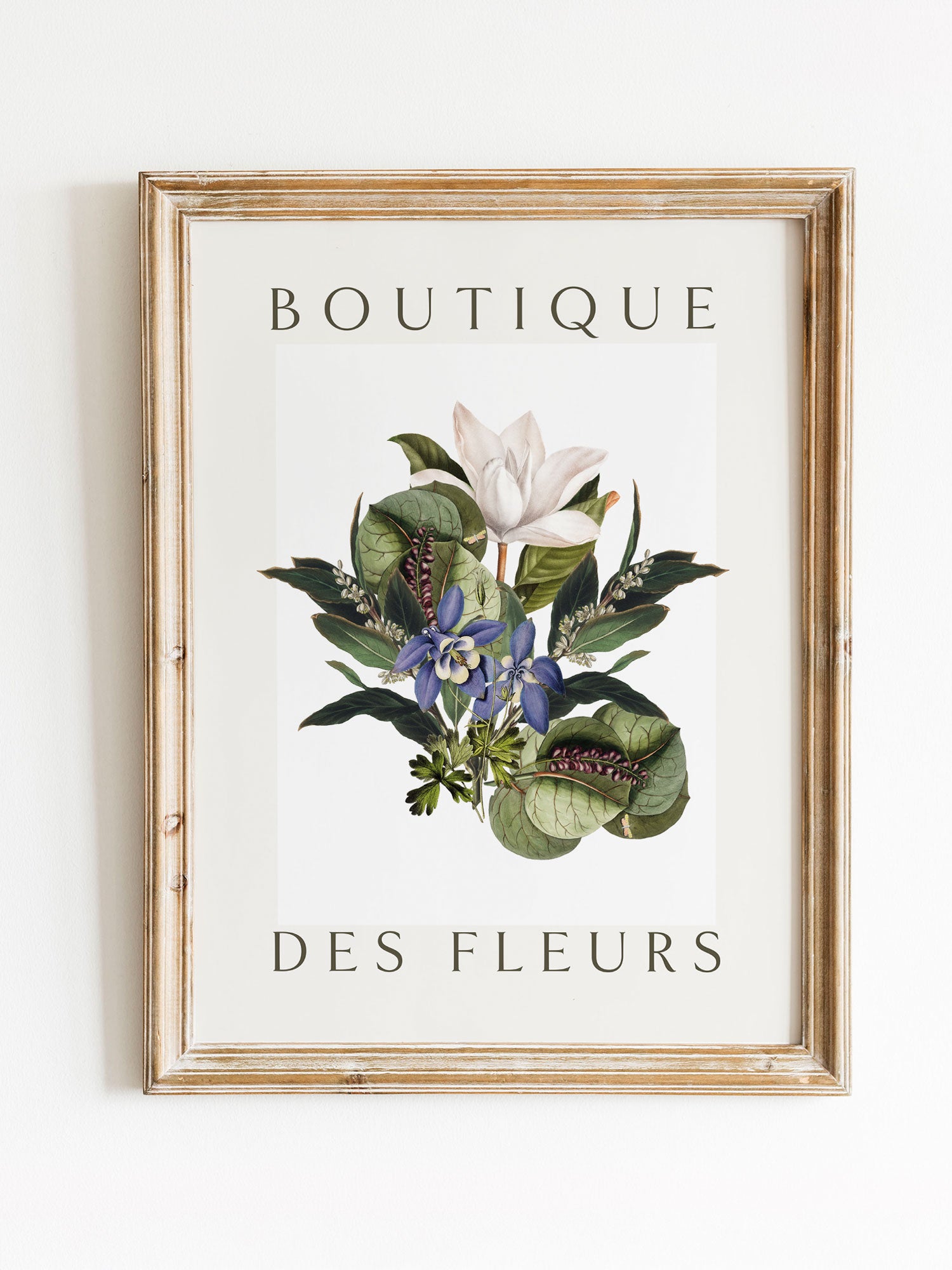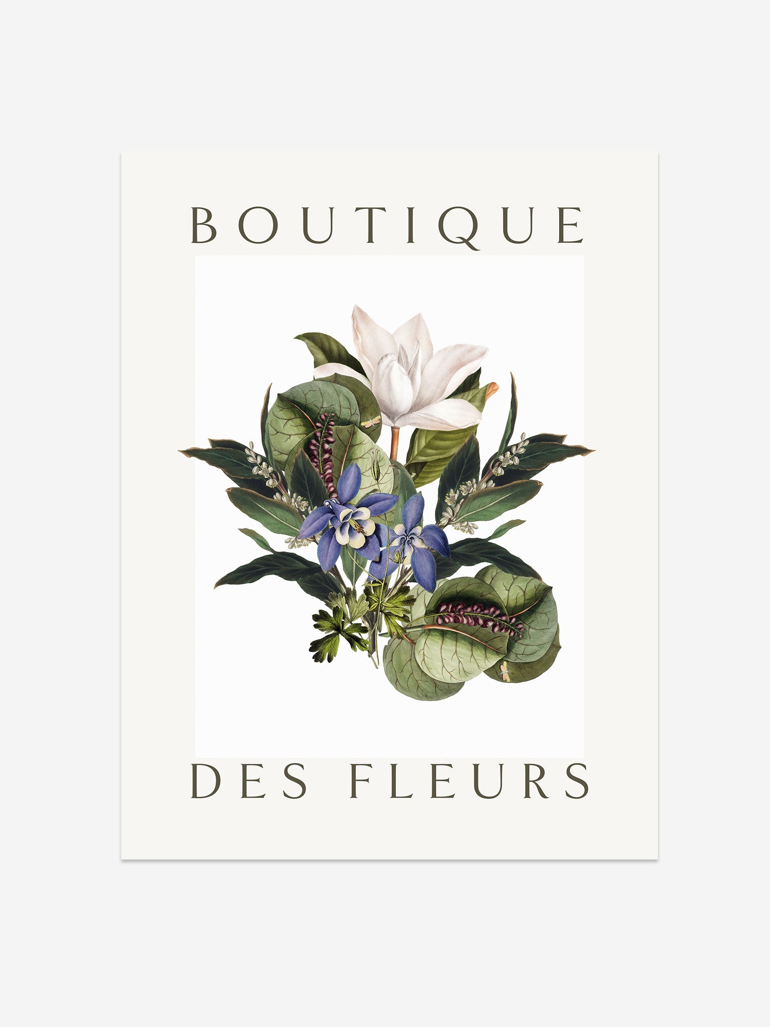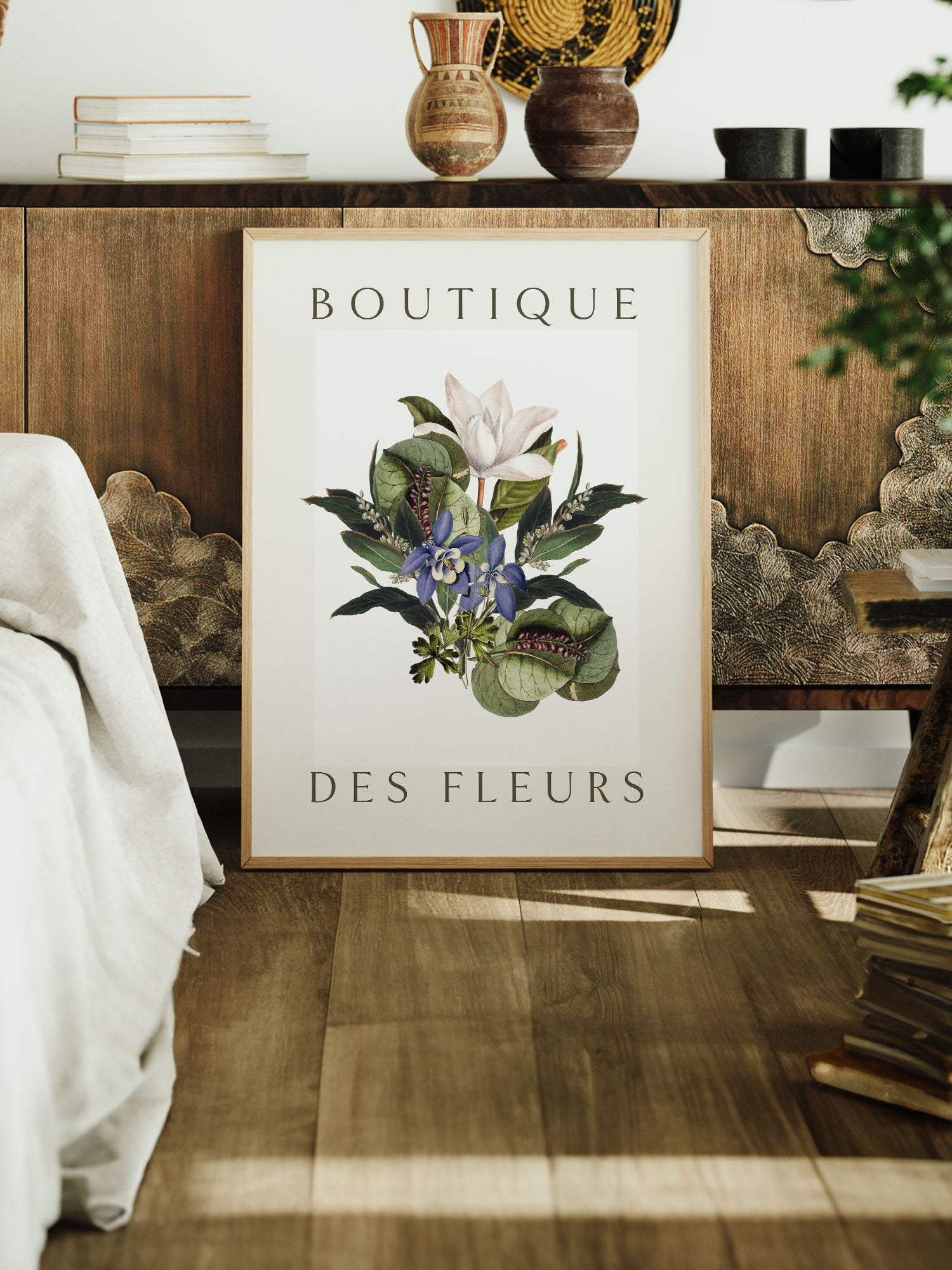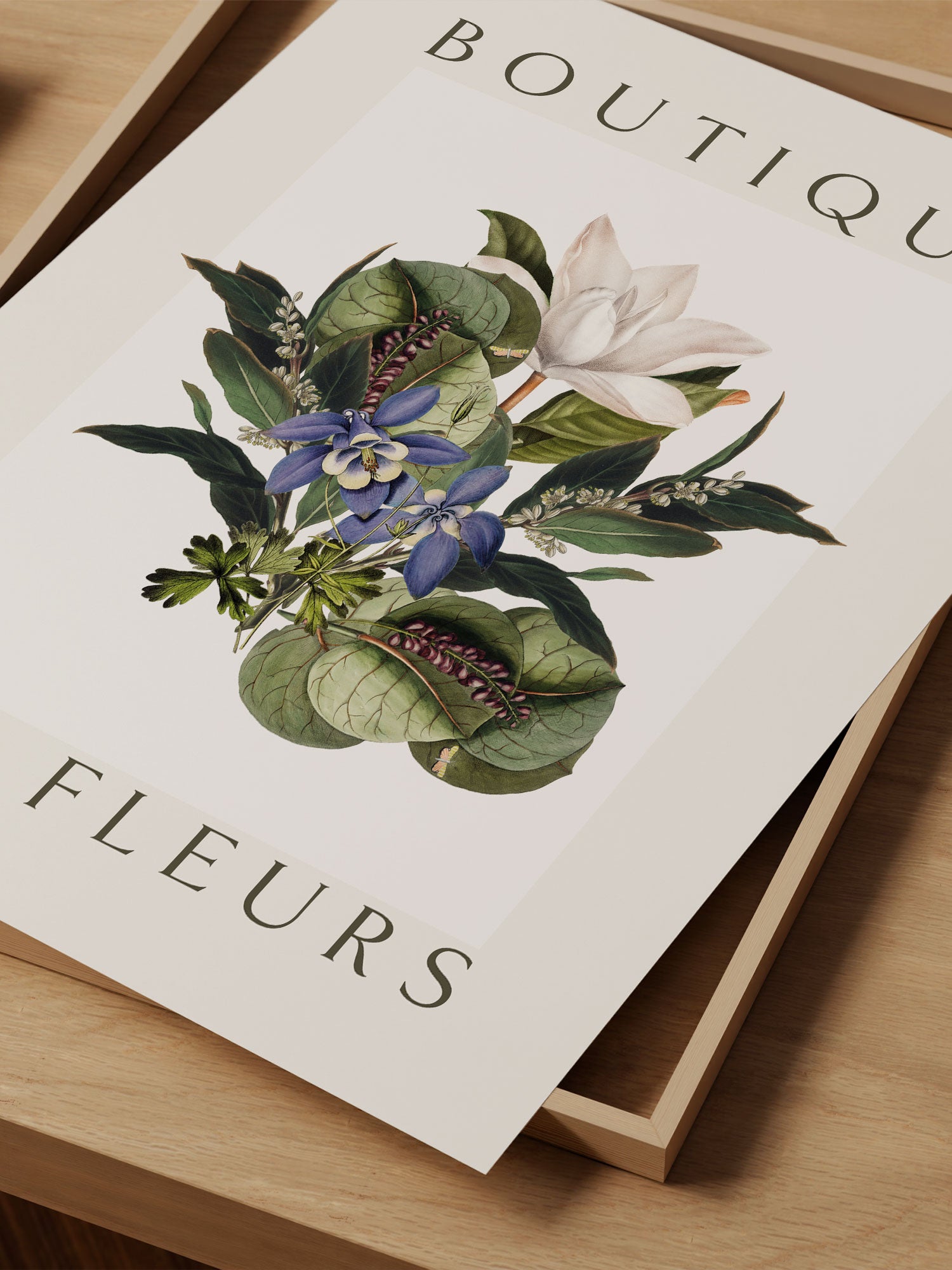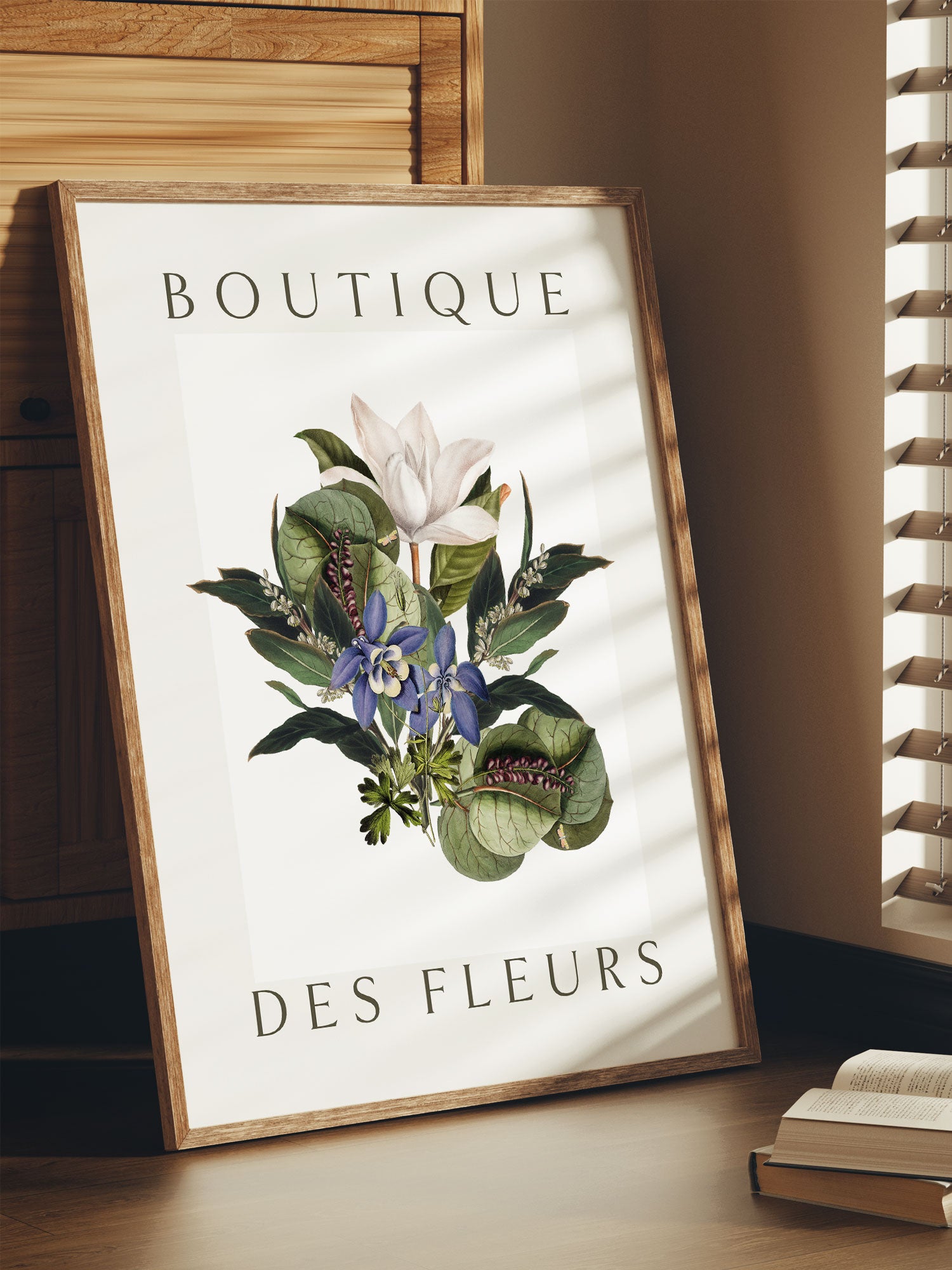 "Boutique des Fleurs" – Refined Botanical Magnolia & Passionflower Print