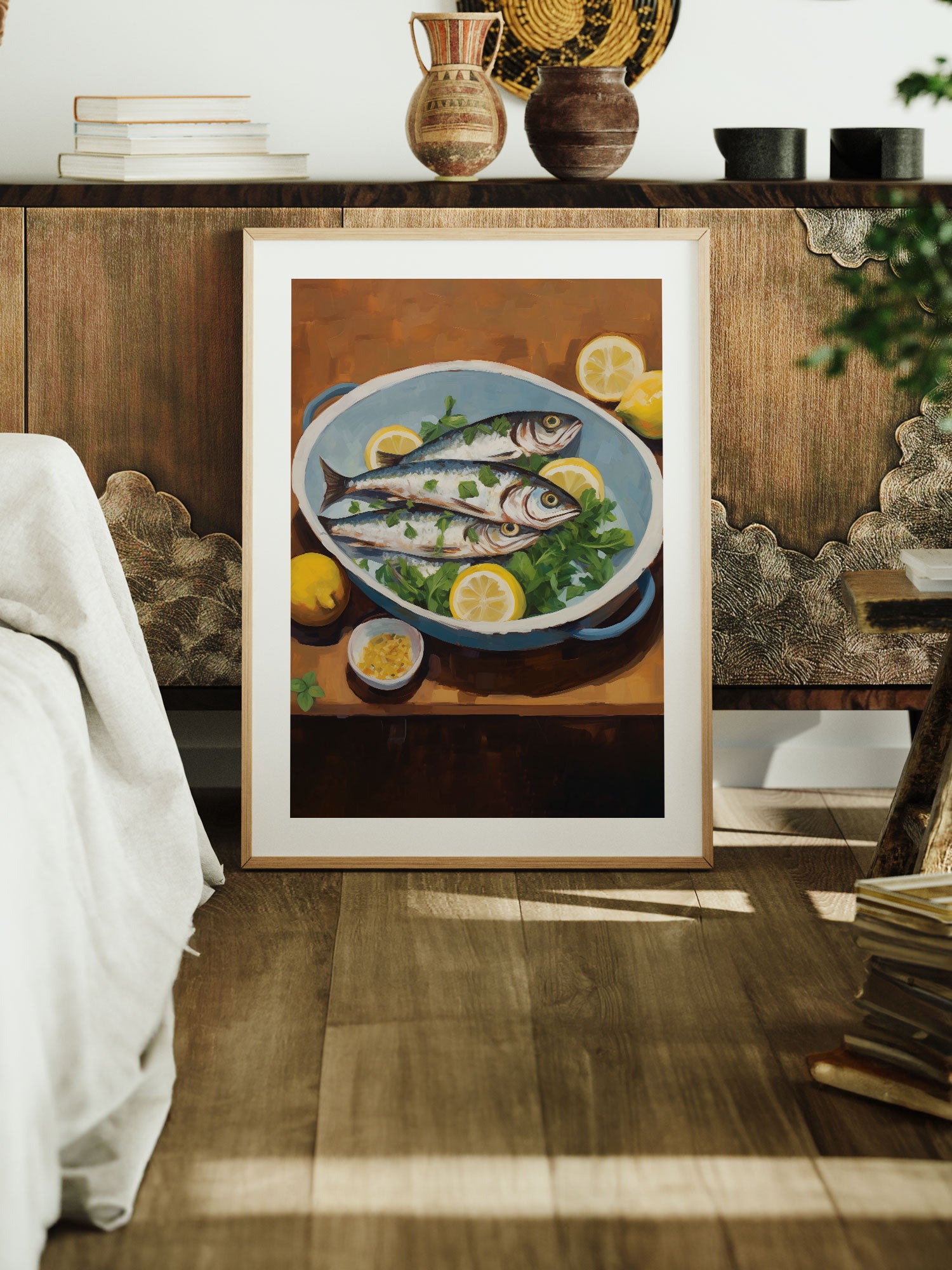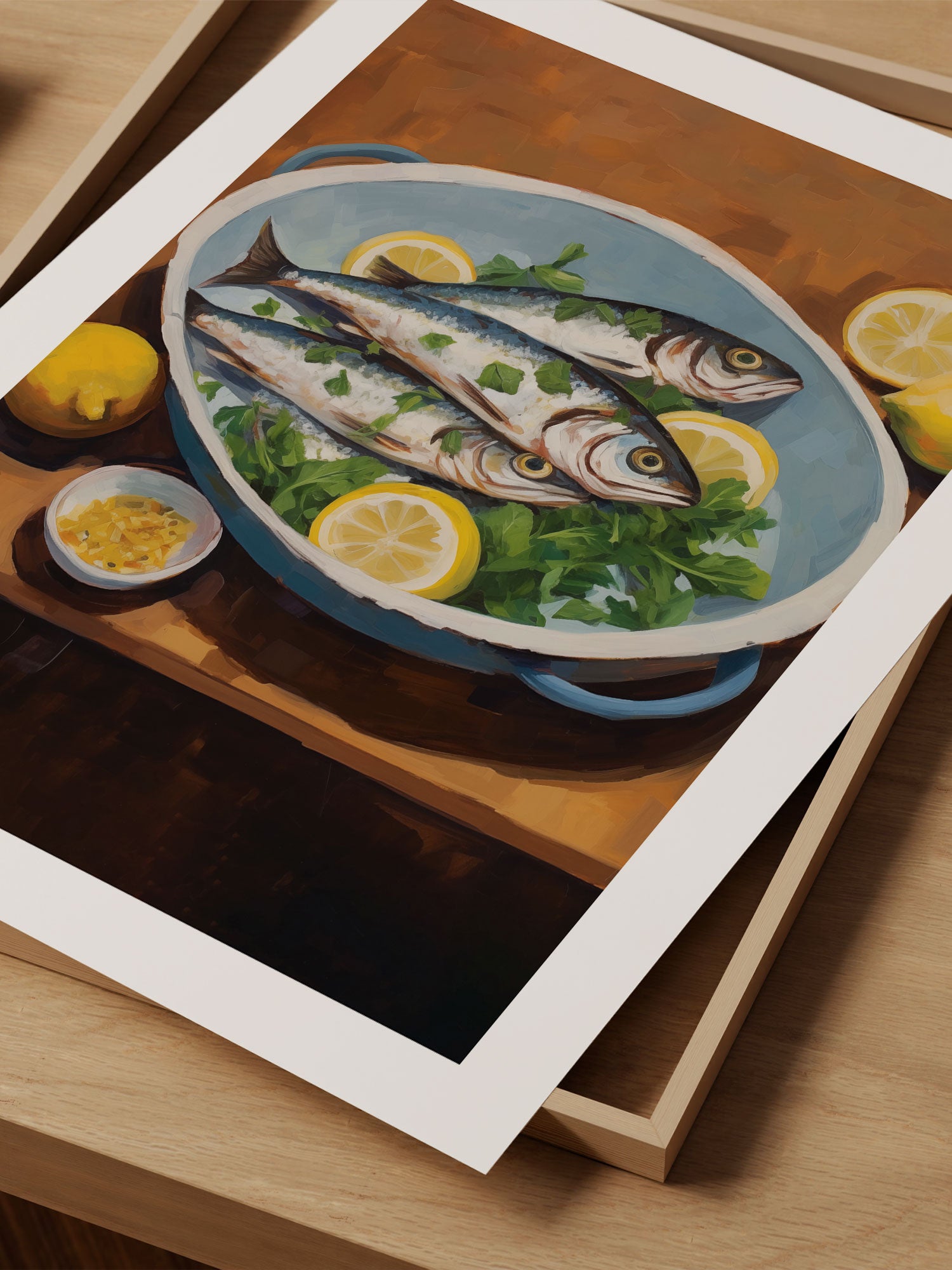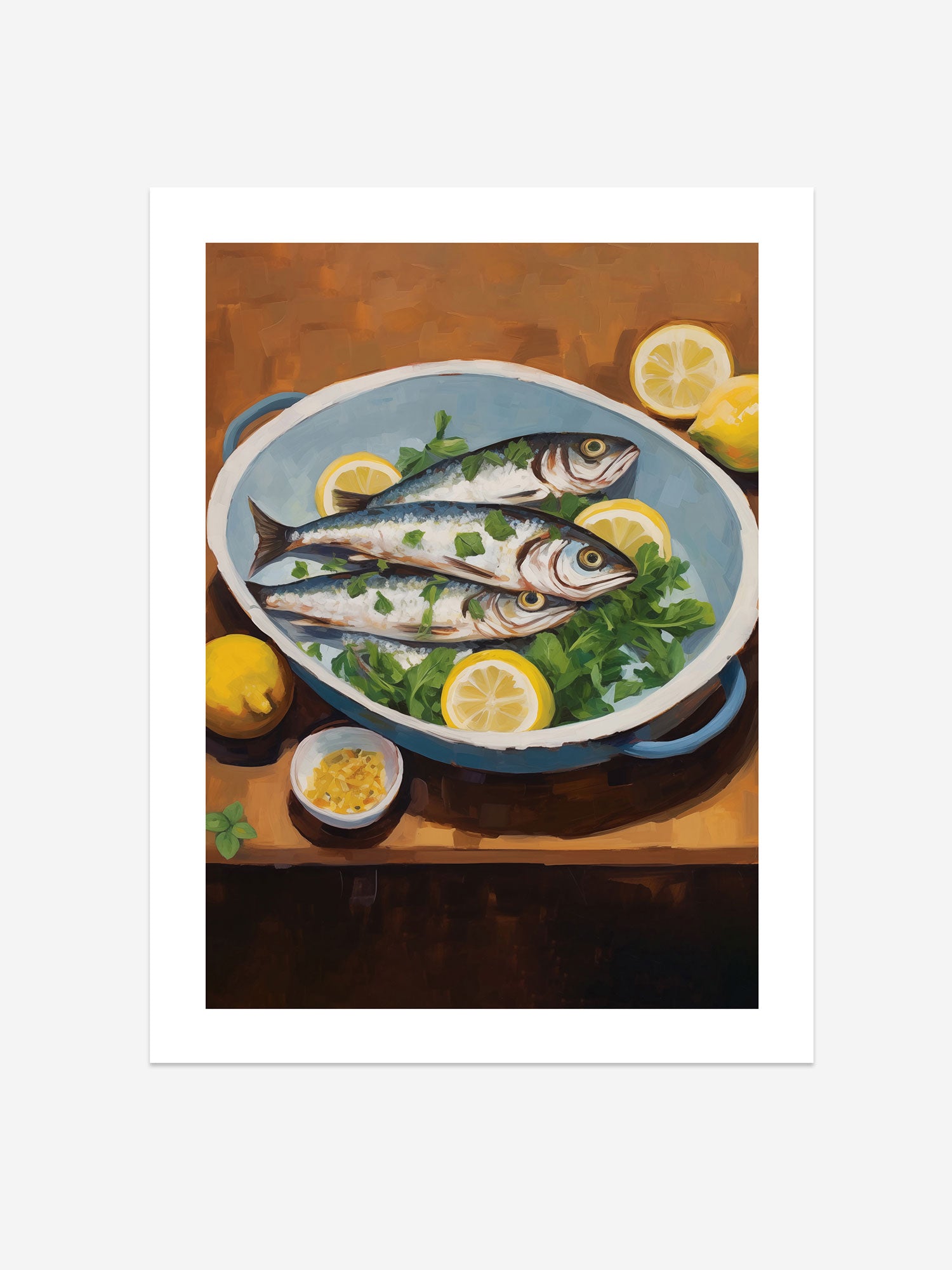 Fish with Lemons Art Print – Mediterranean Still Life for Kitchen