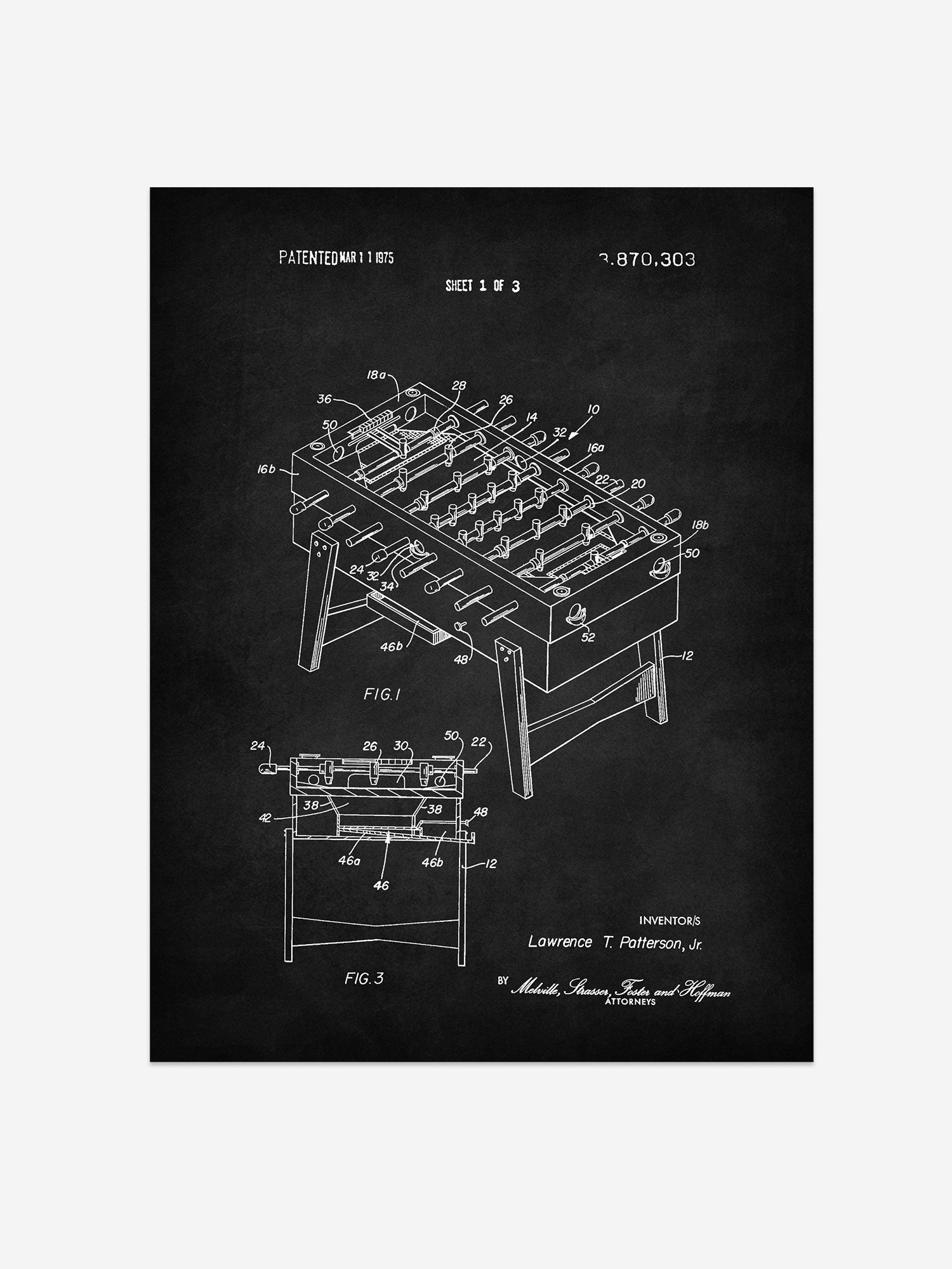 Foosball Table Patent Print – Game Room Art – Office Wall Decor