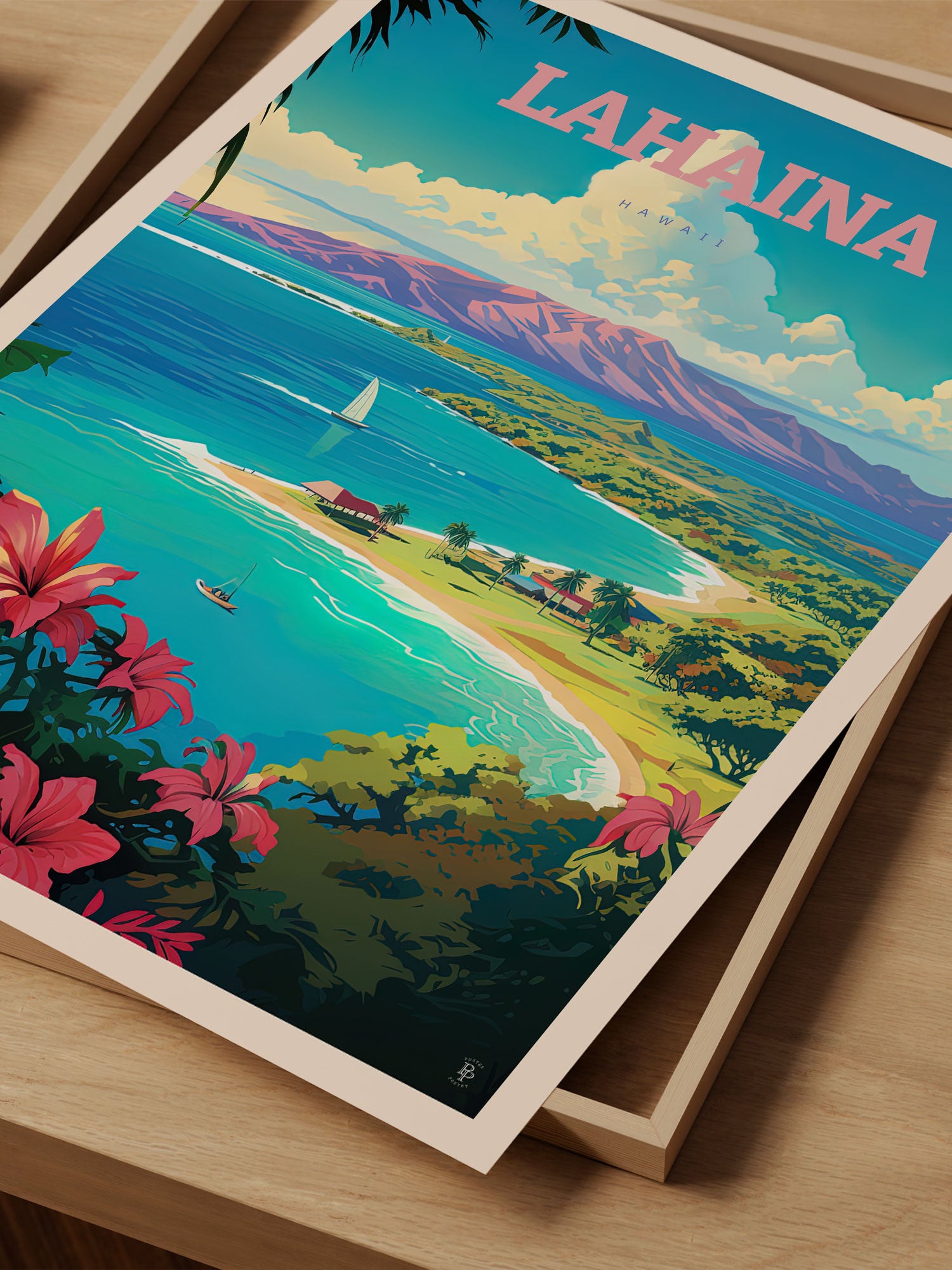 Lahaina Hawaii Travel Poster – Vintage-Inspired Wall Art Print