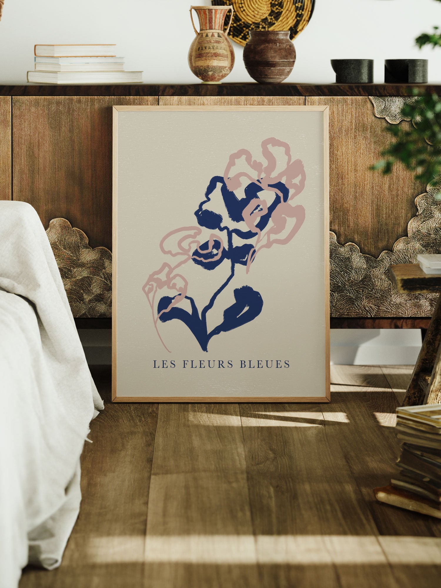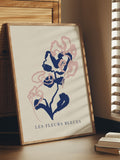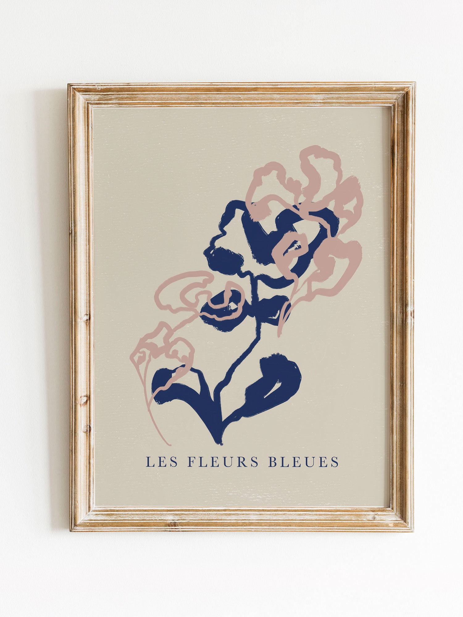Modern Abstract Floral Print with Blue and Blush Accents