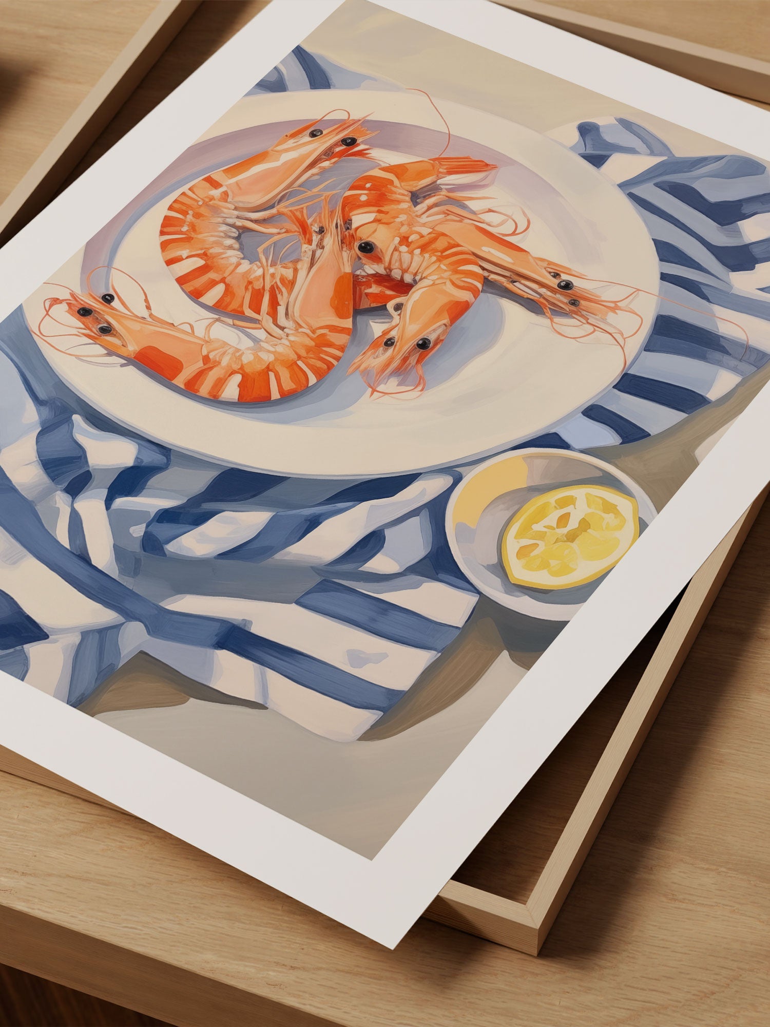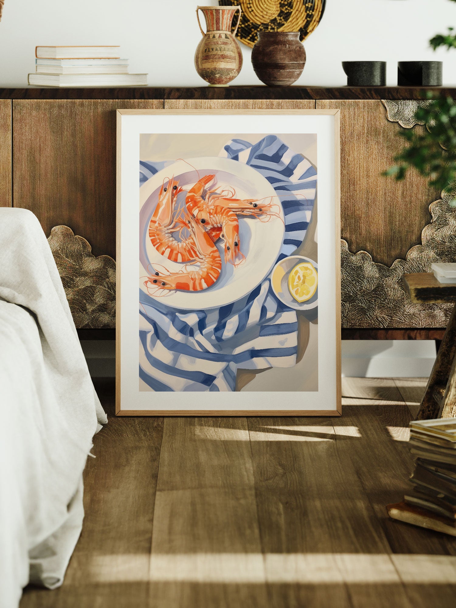 Shrimp and Lemon Art Print – Coastal Kitchen Wall Decor