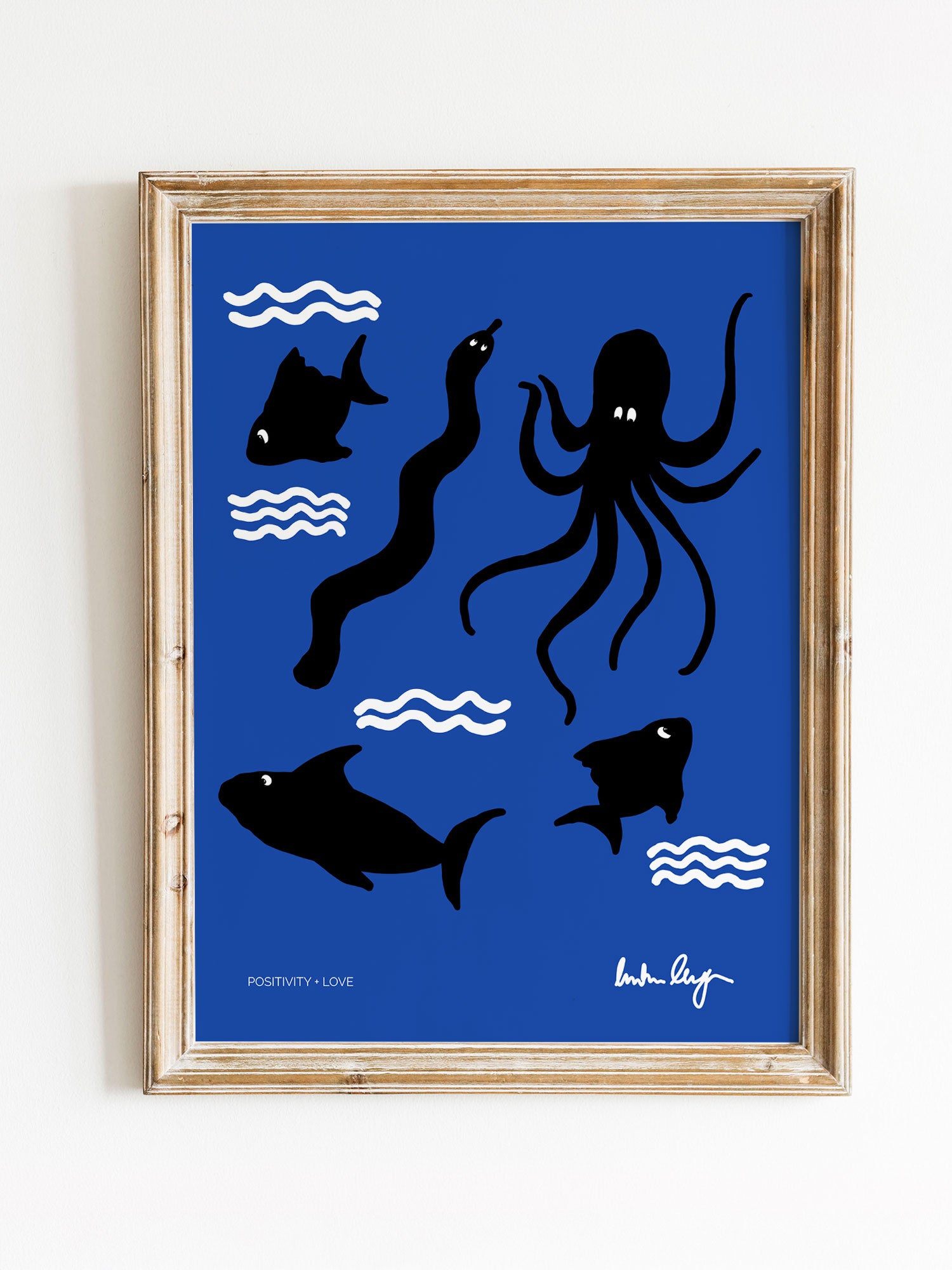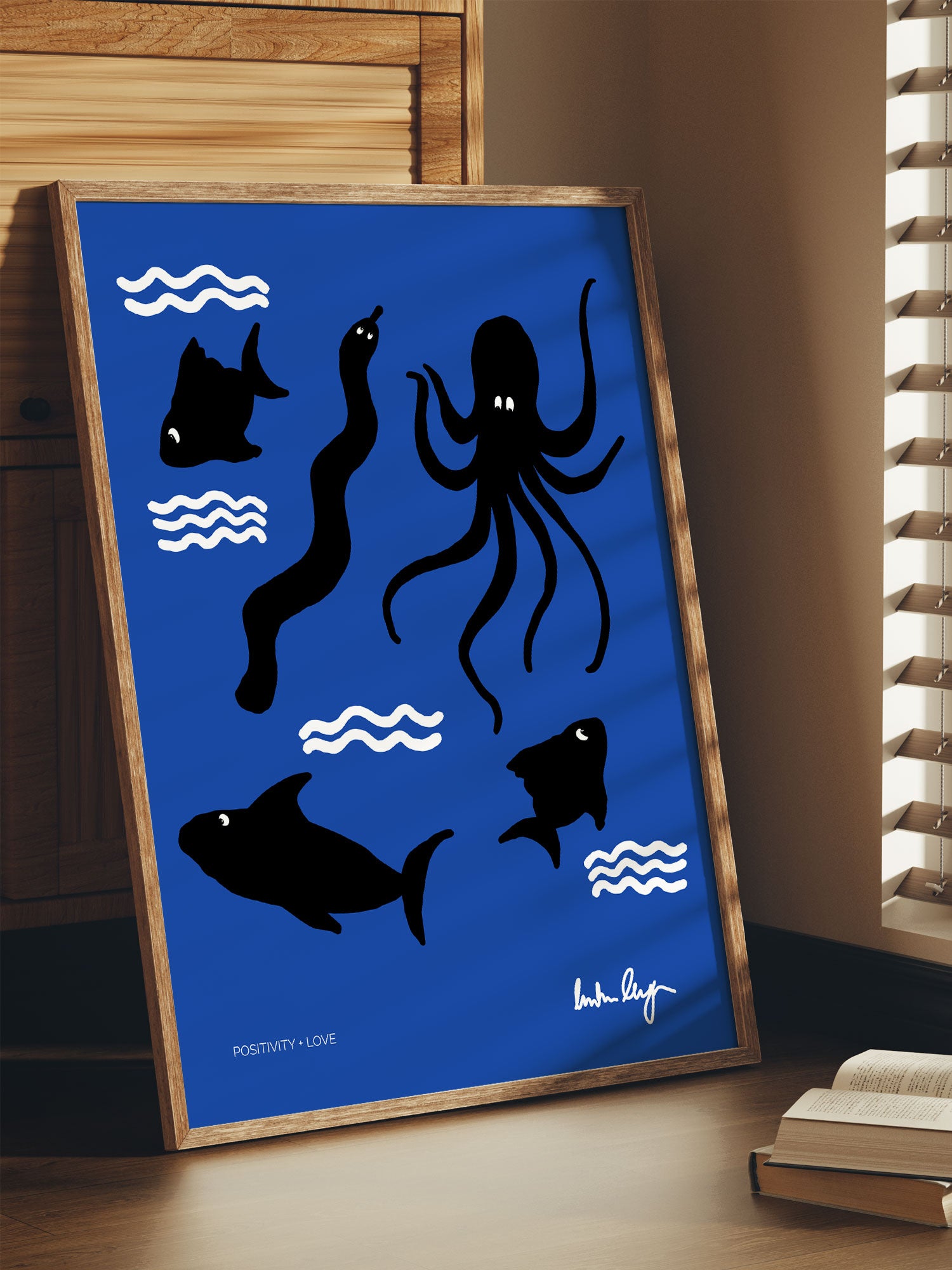 "Underwater Creatures" – Playful Ocean-Themed Print